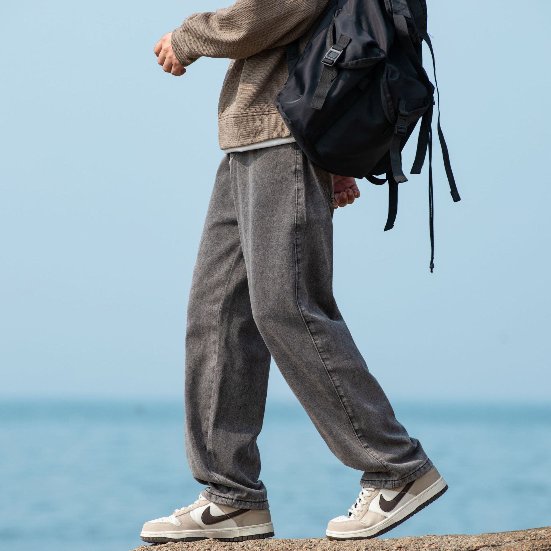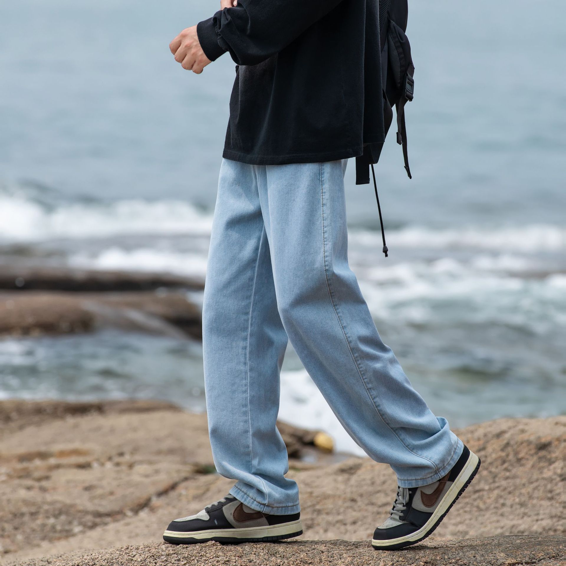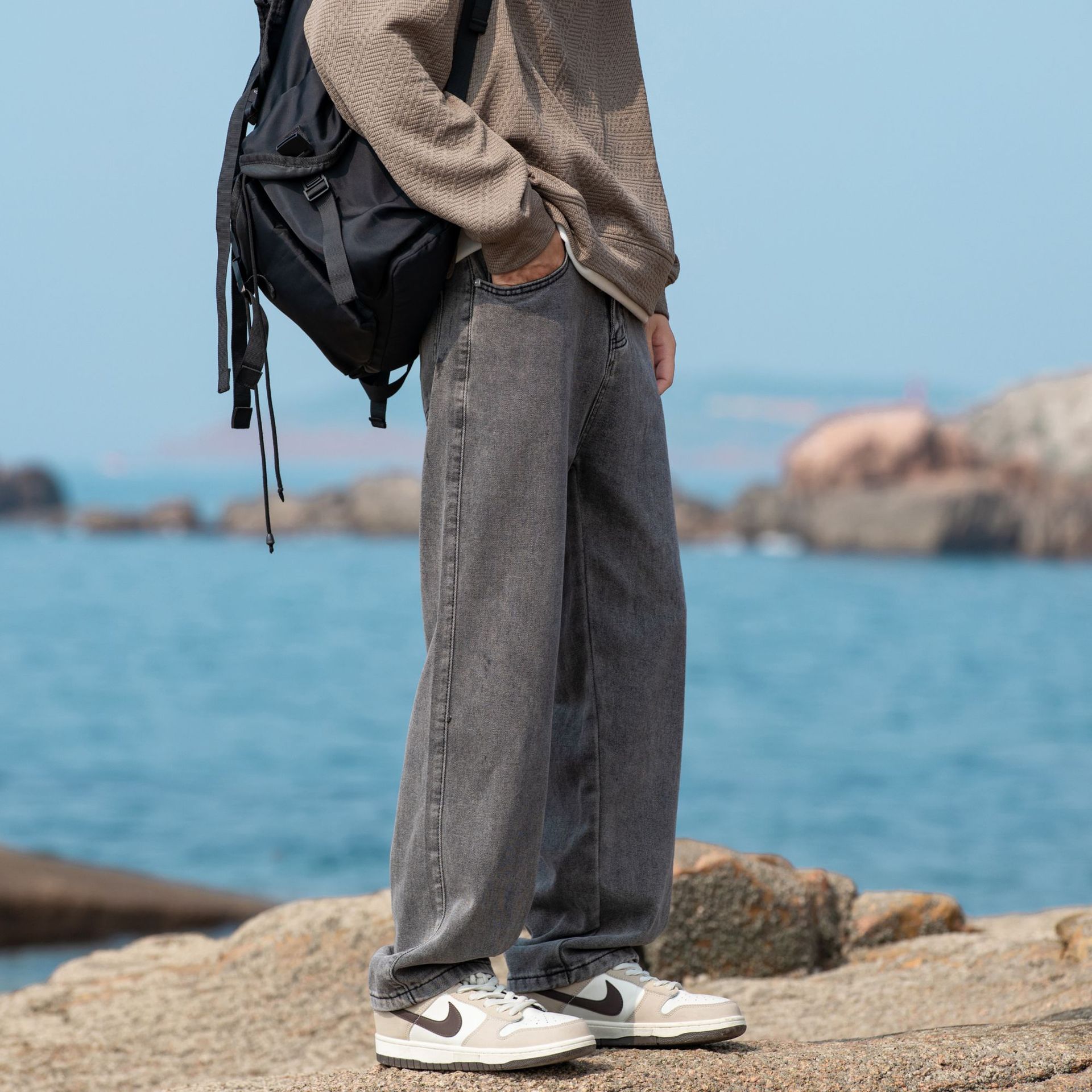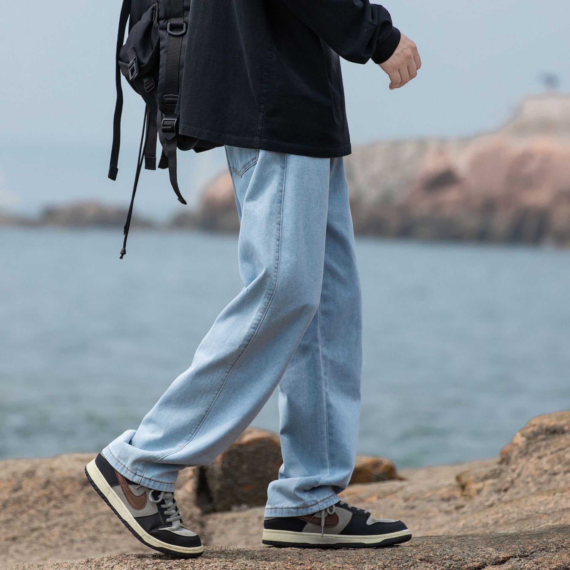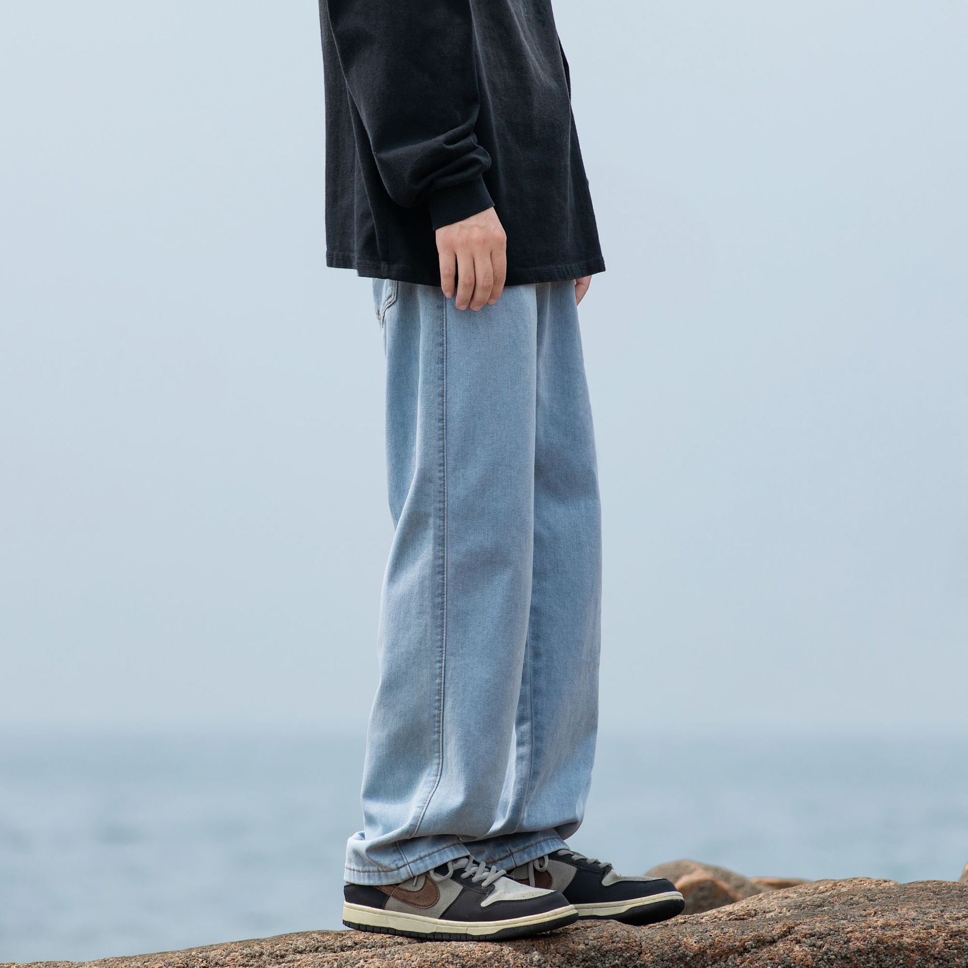 2024 국경 새로운 남성 청바지 트렌디 브랜드 느슨한 스트레이트 바지 간단한 편안한 캐주얼 레트로 바지스토어 가기