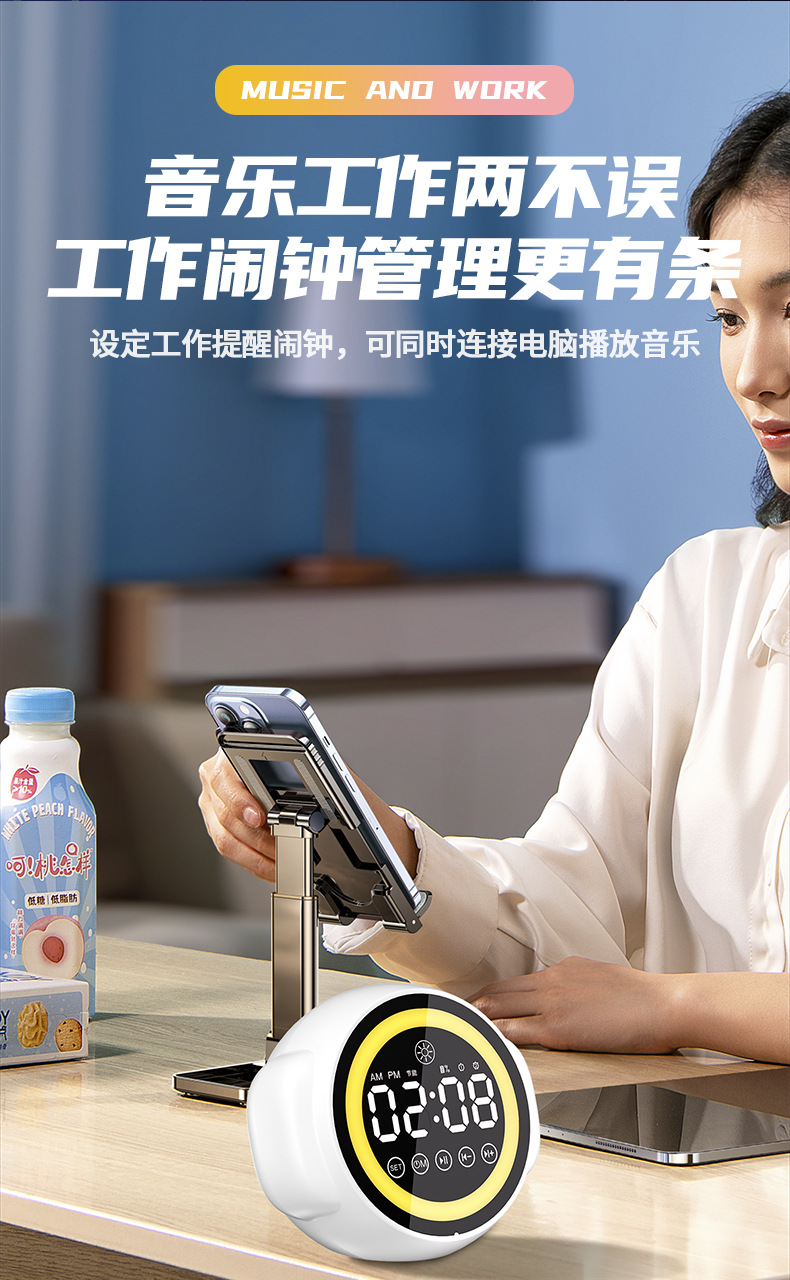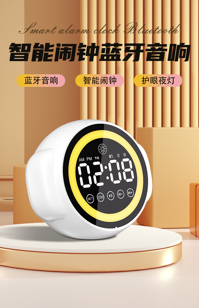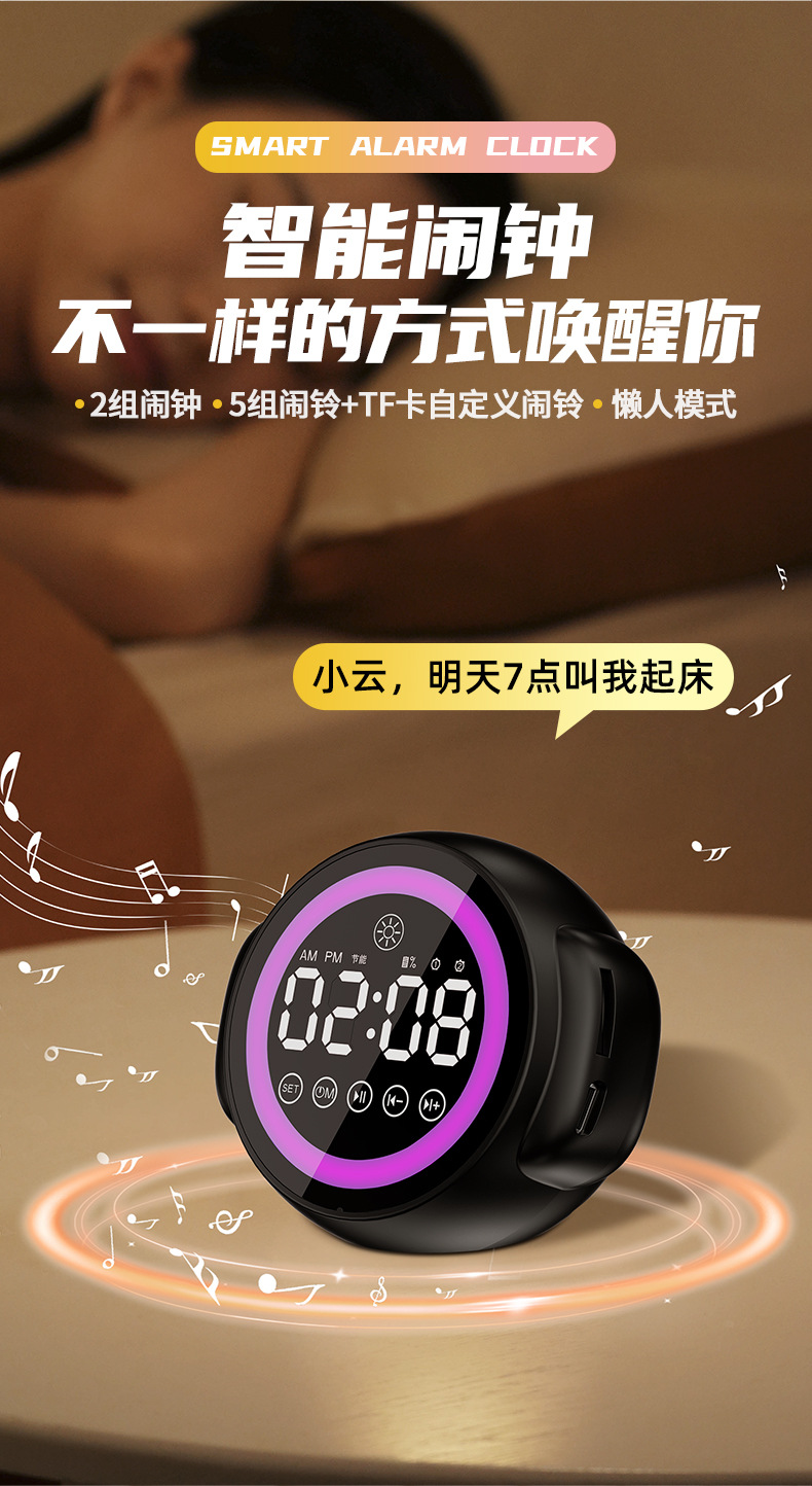 다채로운 조명 다기능 스마트 블루투스 오디오 알람 시계 무선 학생 기숙사 학습 작은 스피커 전자 경보스토어 가기