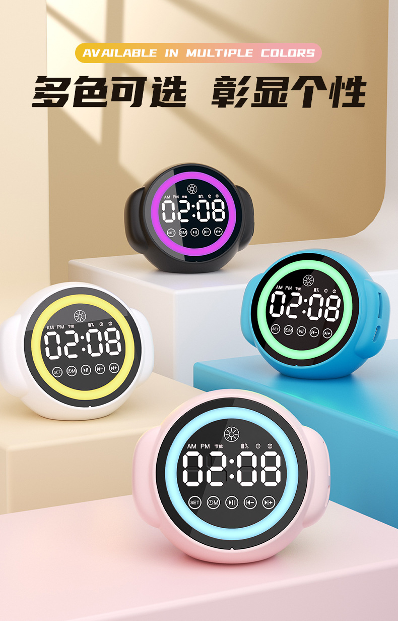 다채로운 조명 다기능 스마트 블루투스 오디오 알람 시계 무선 학생 기숙사 학습 작은 스피커 전자 경보