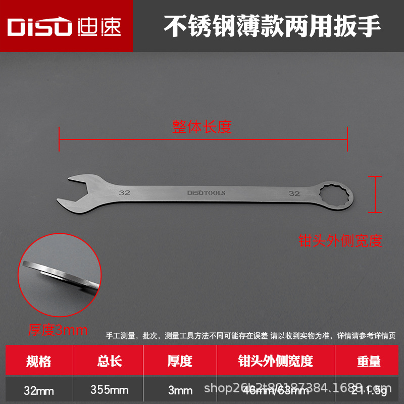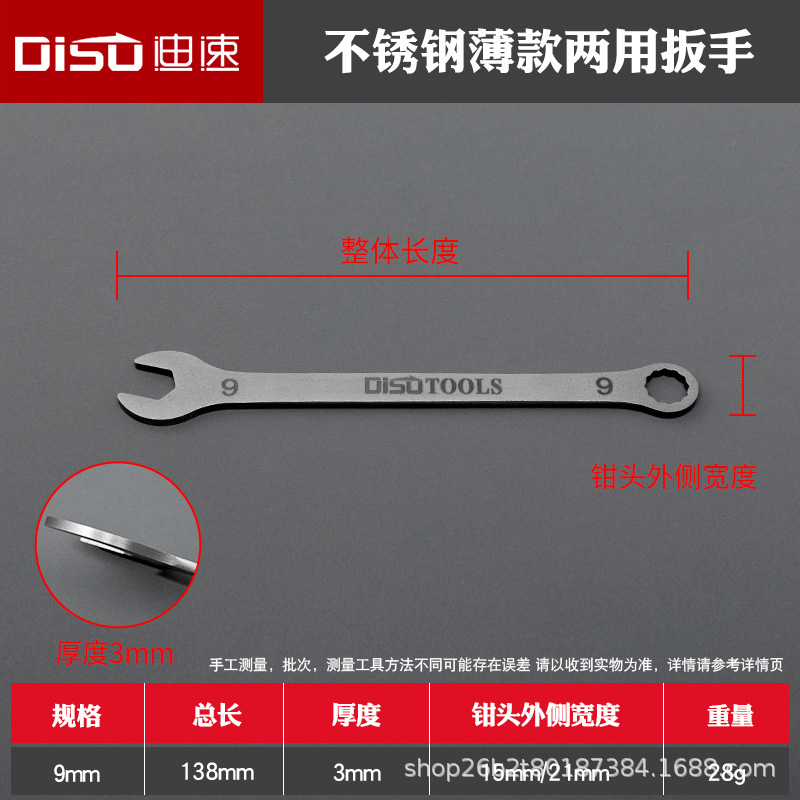 Di 속도 스테인레스 스틸 오픈 엔드 렌치 3mm 초박형 더블 오픈 얇은 렌치 포크 더블 뻣뻣한 5.5-32