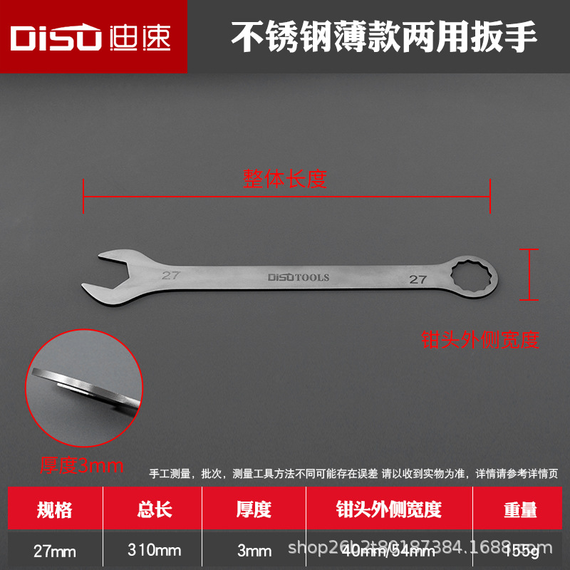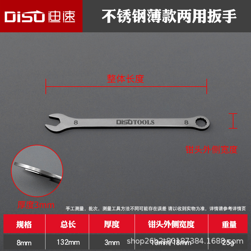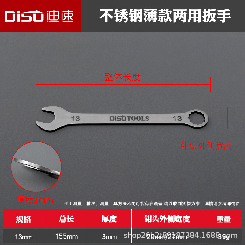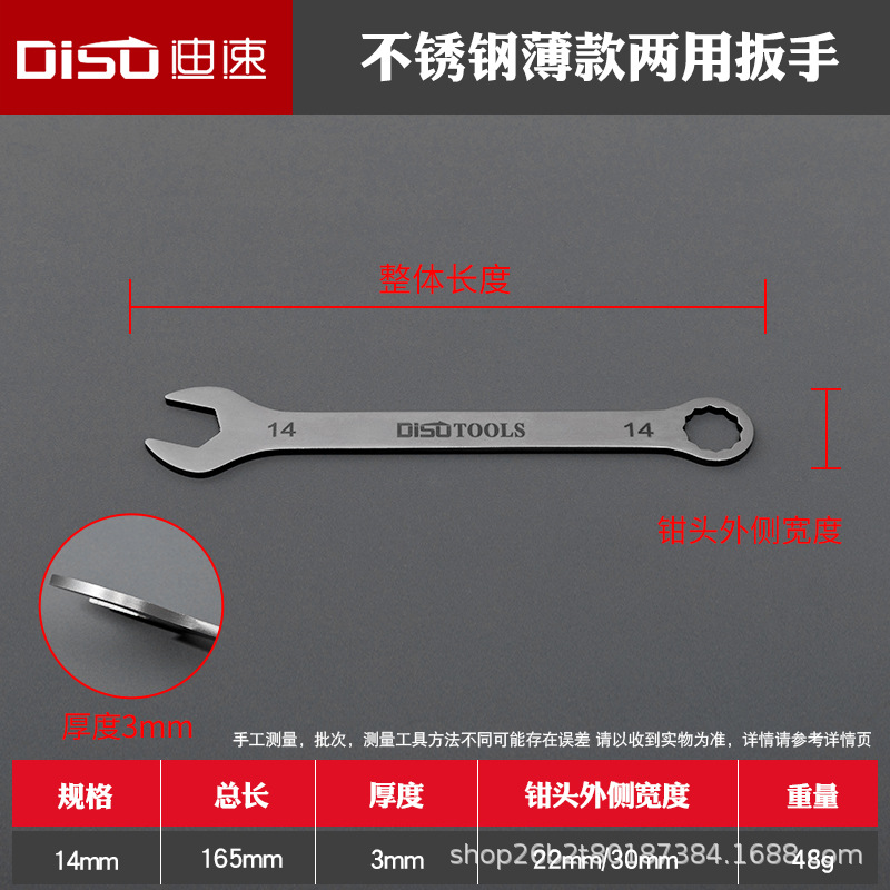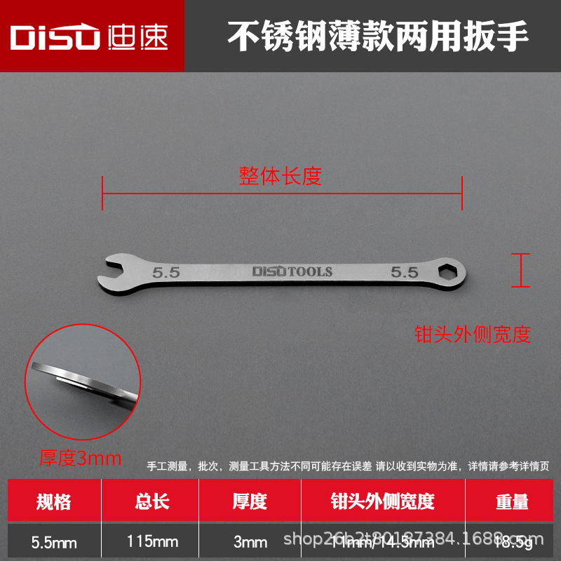 Di 속도 스테인레스 스틸 오픈 엔드 렌치 3mm 초박형 더블 오픈 얇은 렌치 포크 더블 뻣뻣한 5.5-32스토어 가기