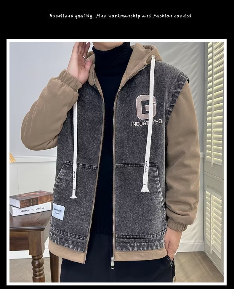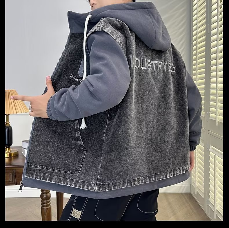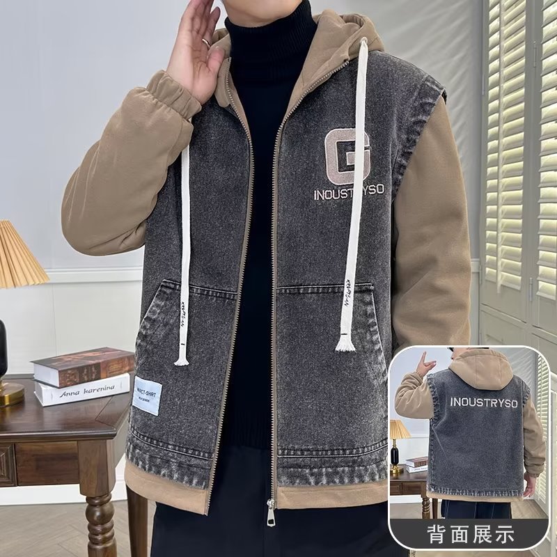 새로운 봄과 가을 2024 남성 하이 스트리트 트렌디 브랜드 인기 재킷 느슨한 디자인 센스 후드 캐주얼 트렌디 탑스토어 가기