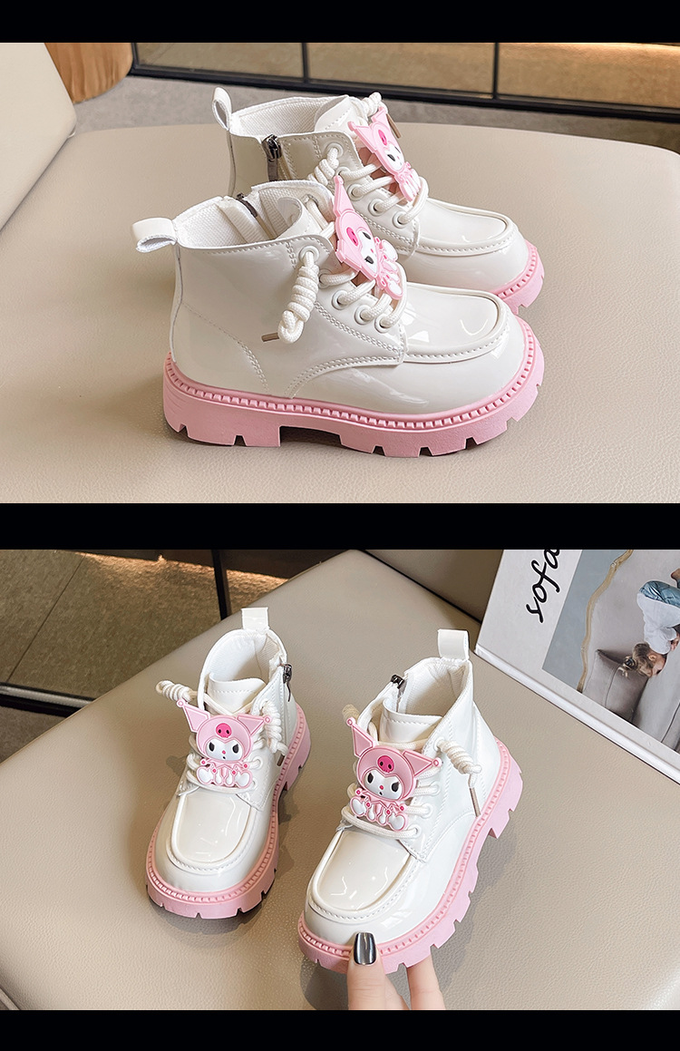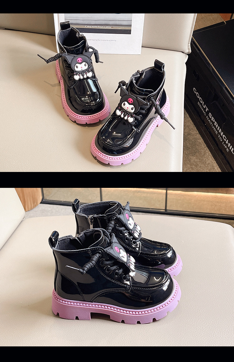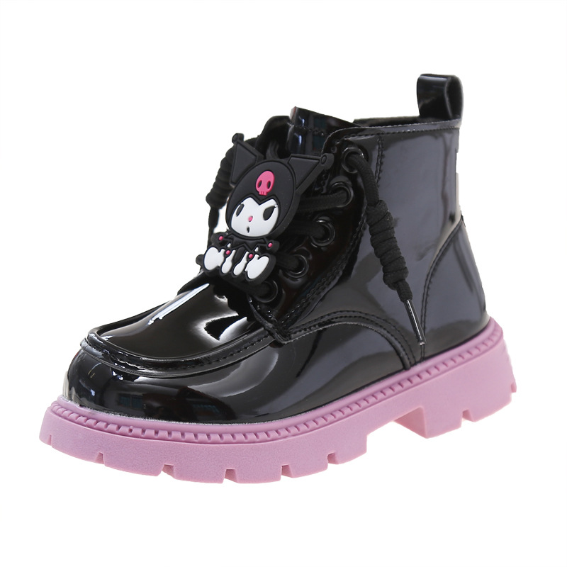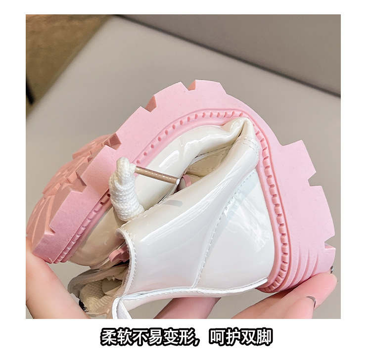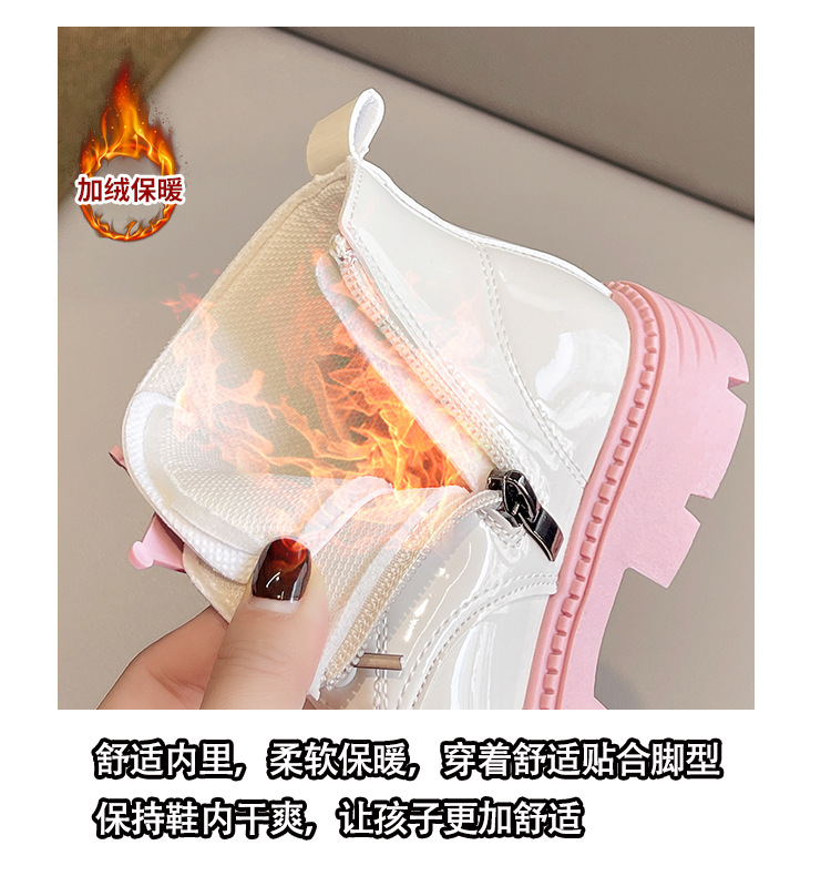 여자 밝은 가죽 마틴 부츠 Kouromi 어린이 부츠 2024 가을/겨울 기모 소녀의 서양식 가죽 부츠