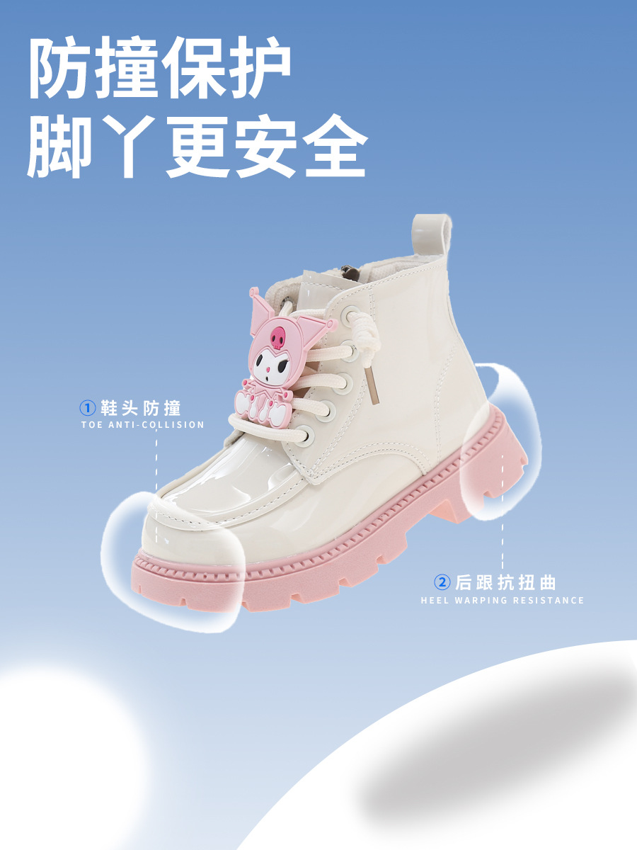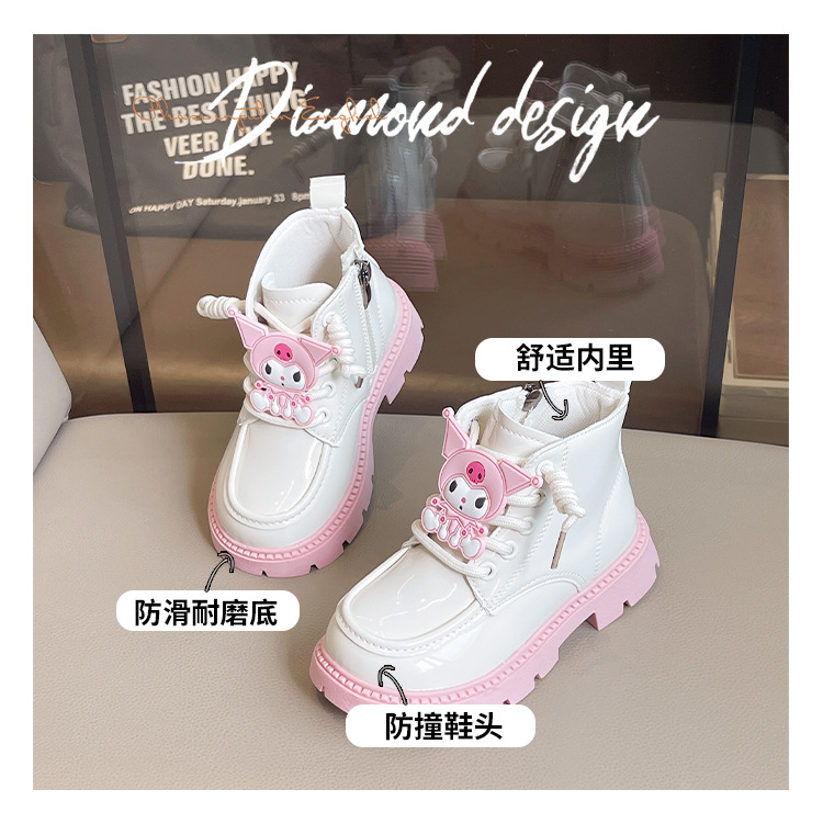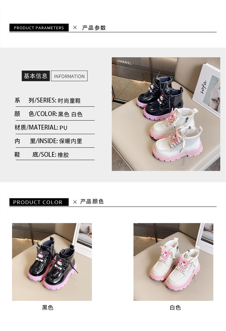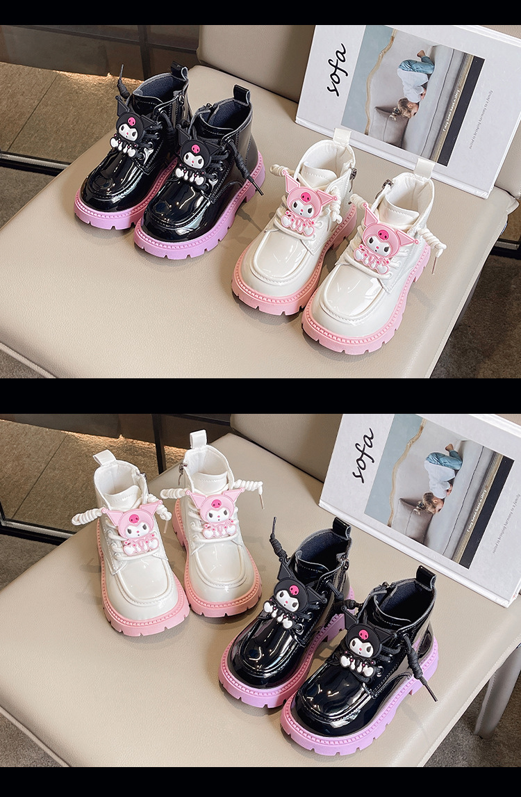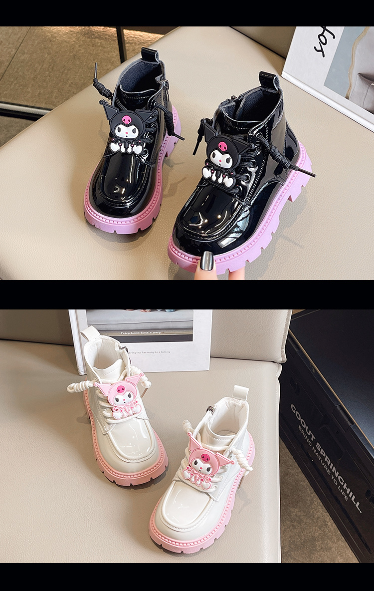 여자 밝은 가죽 마틴 부츠 Kouromi 어린이 부츠 2024 가을/겨울 기모 소녀의 서양식 가죽 부츠