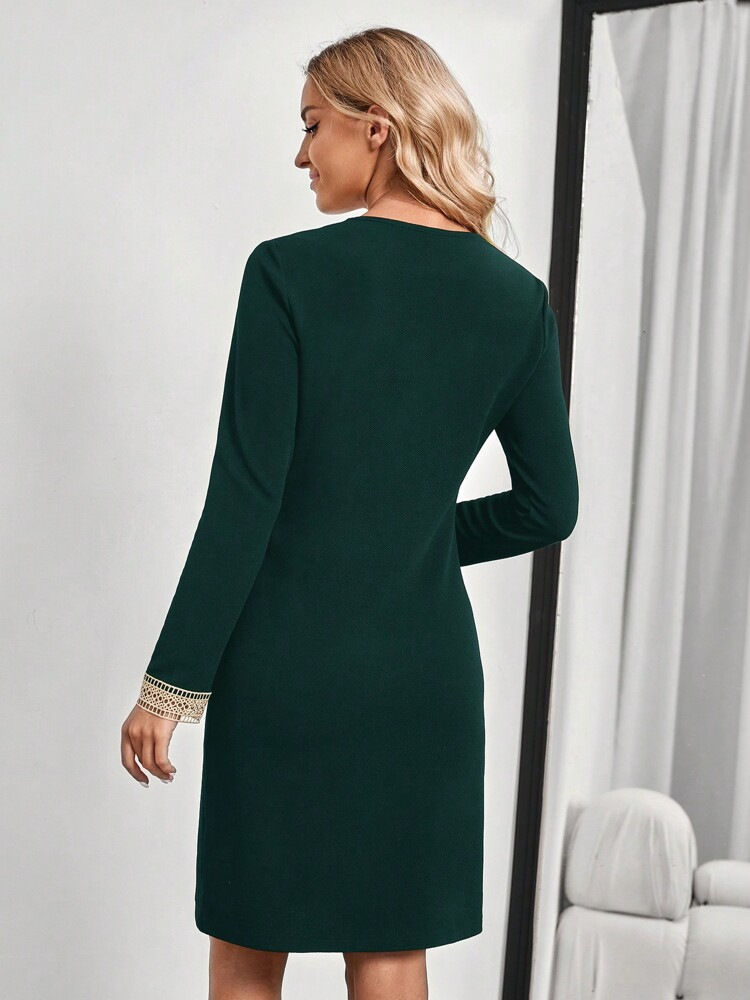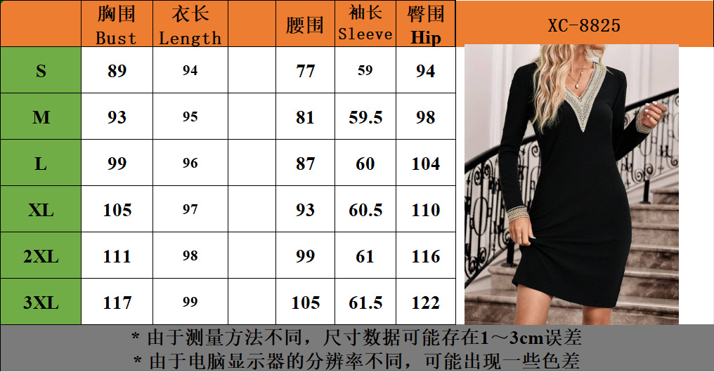 아마존 AliExpress 유럽 및 미국면 및 린넨 작은 V 넥 레이스 스티칭 복고풍 단색 긴 소매 원피스 여성스토어 가기