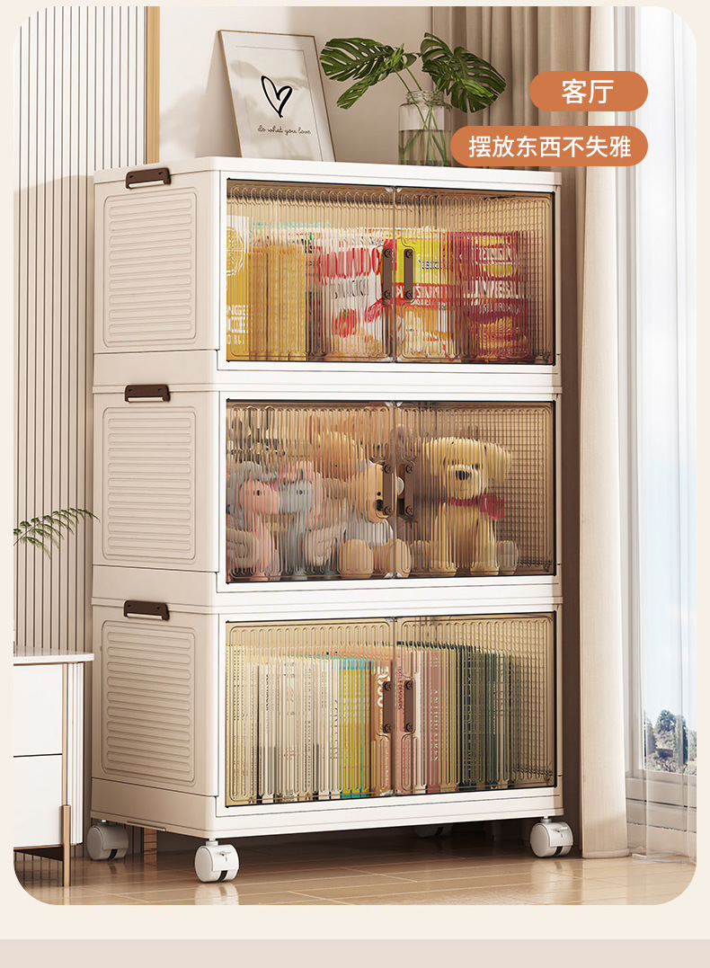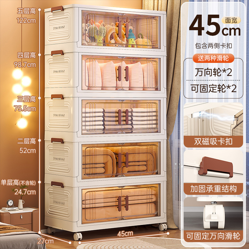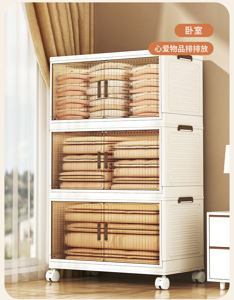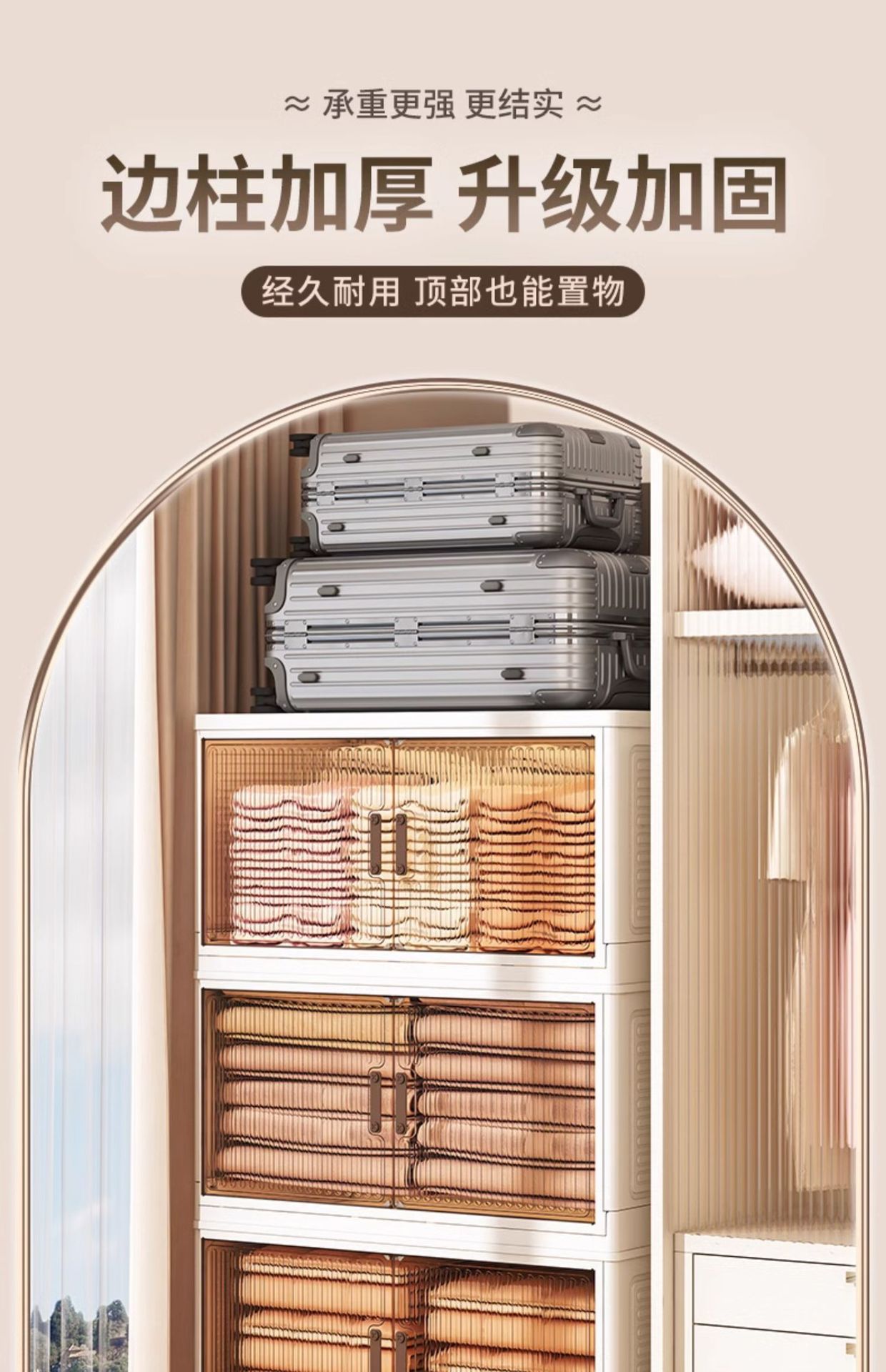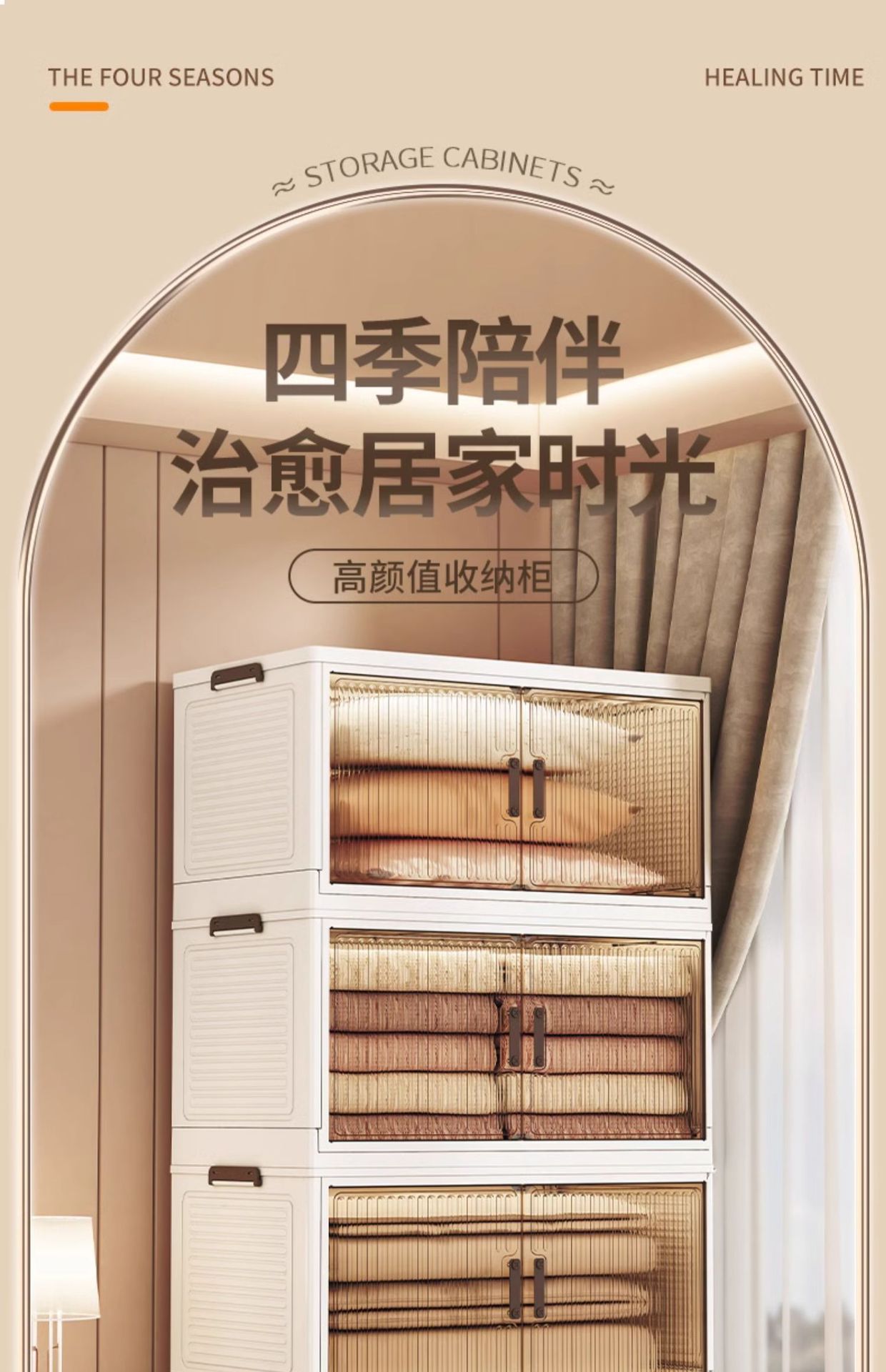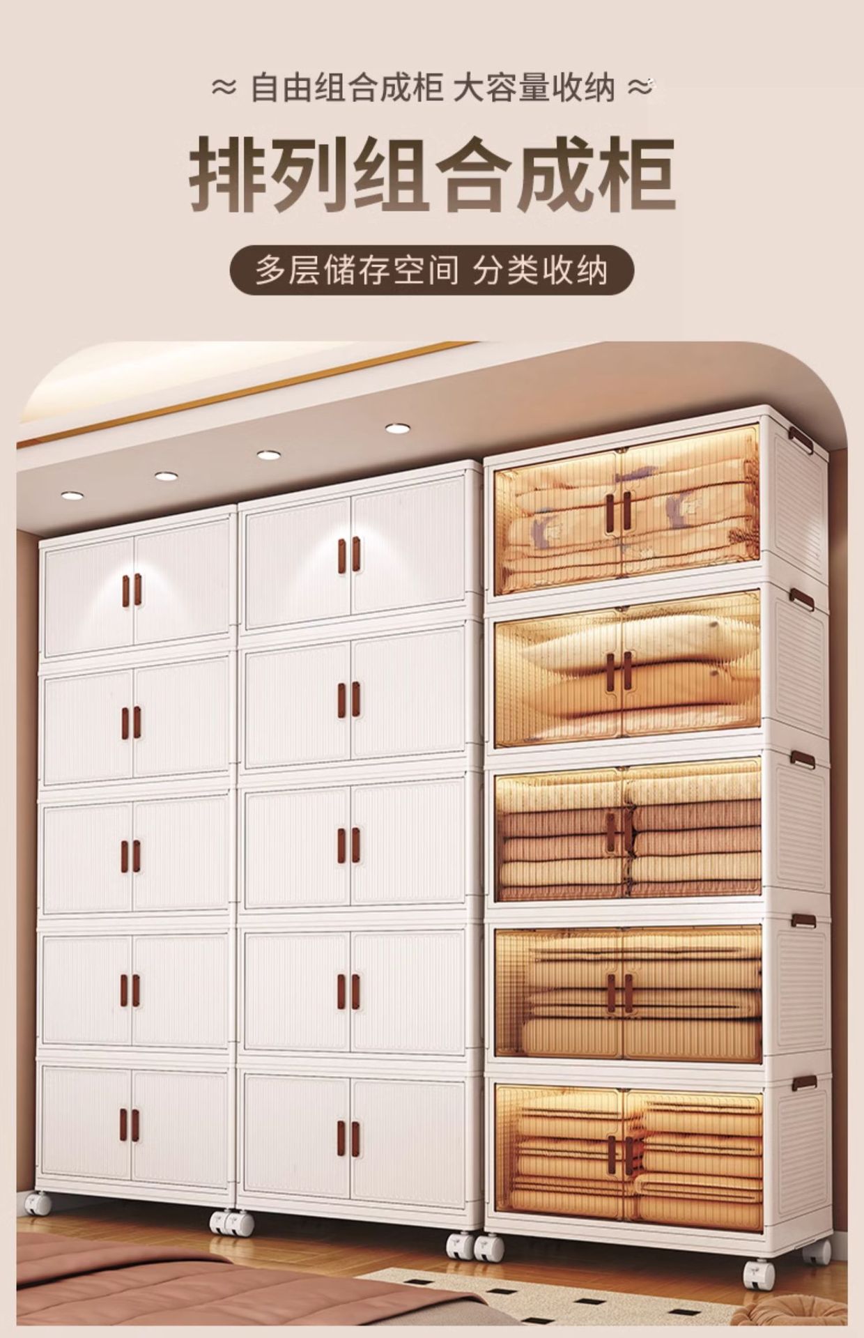 설치 무료 접이식 옷장 가정용 침실 옷 퀼트 자기 흡수 캐비닛 이동식 저장 캐비닛 도어가있는 다층 캐비닛