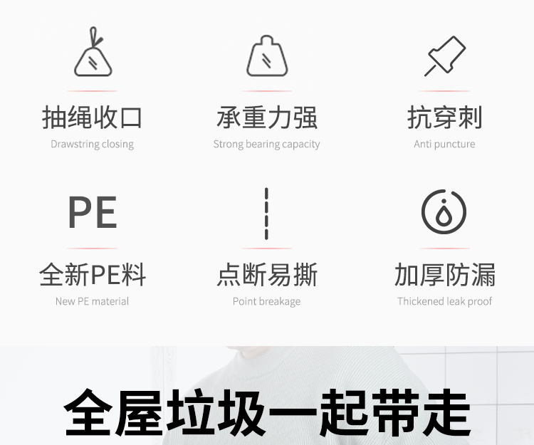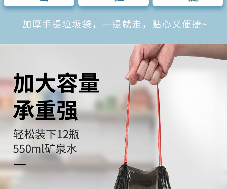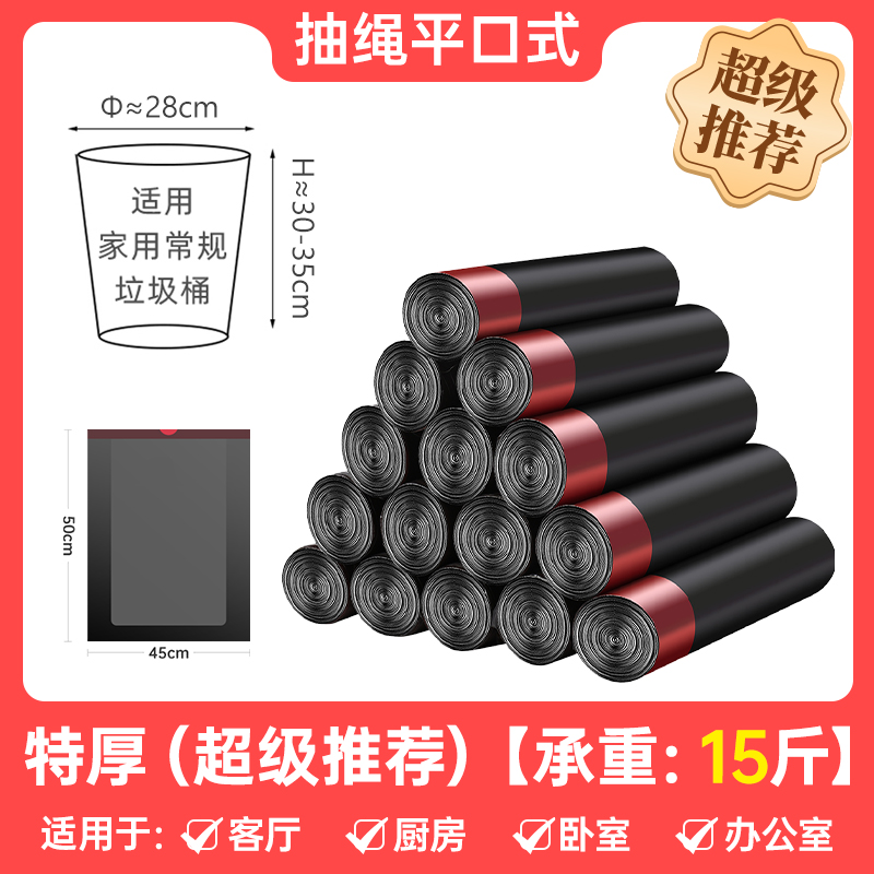 쓰레기 봉투 가정용 휴대용 두꺼운 대형 주방 양동이 검은 조끼 사무실 당기기 끈 비닐 봉지스토어 가기