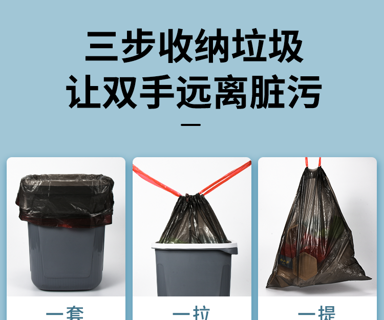 쓰레기 봉투 가정용 휴대용 두꺼운 대형 주방 양동이 검은 조끼 사무실 당기기 끈 비닐 봉지