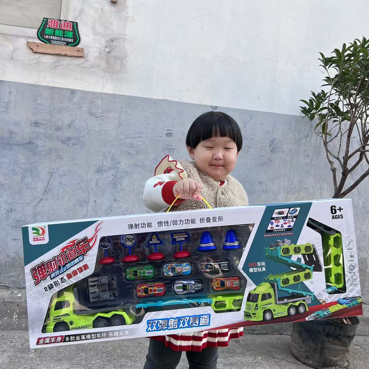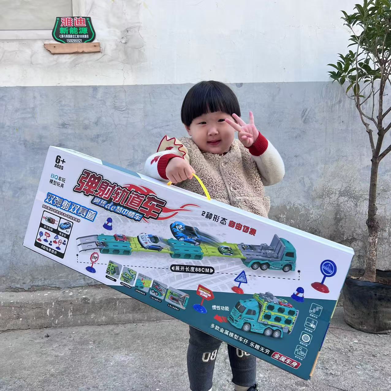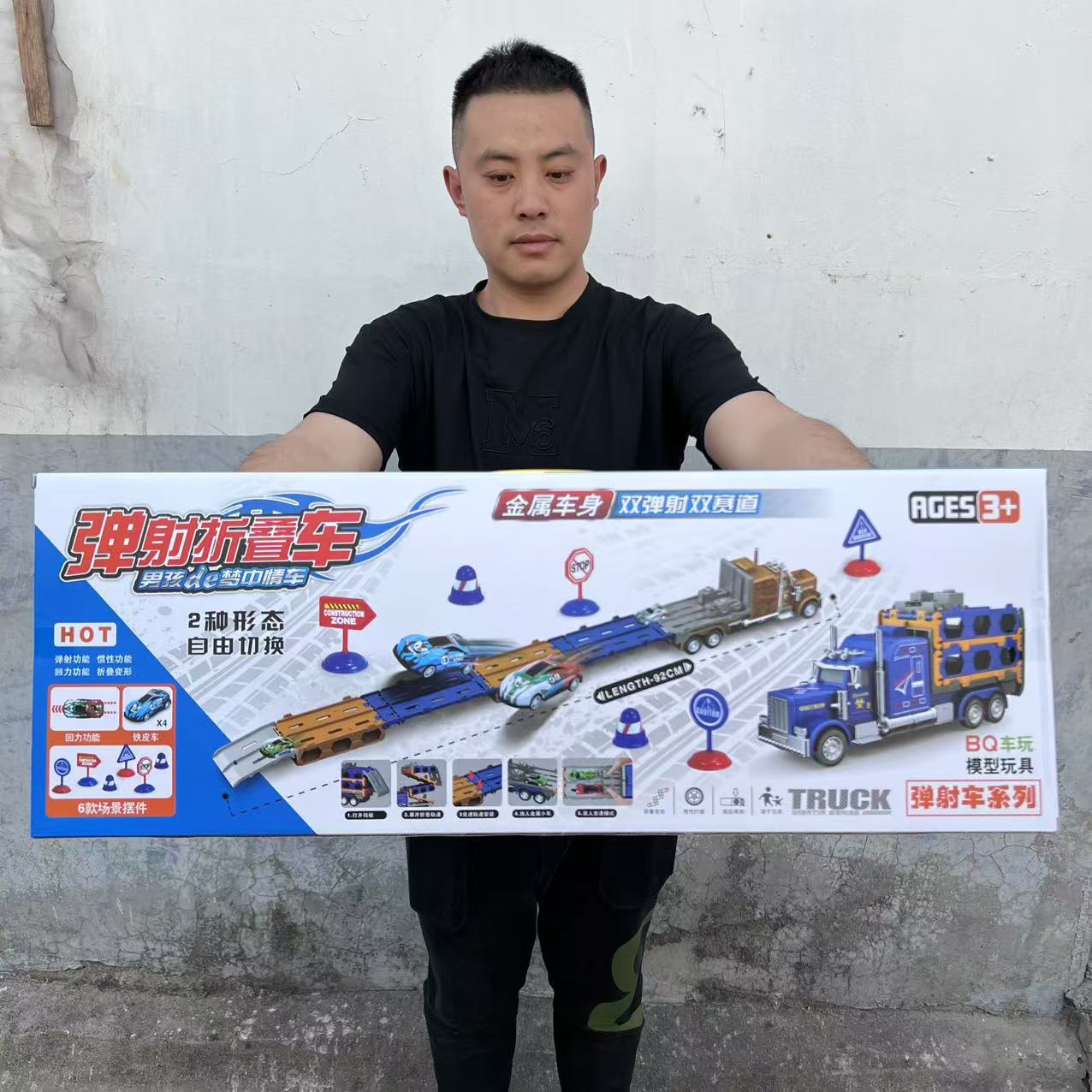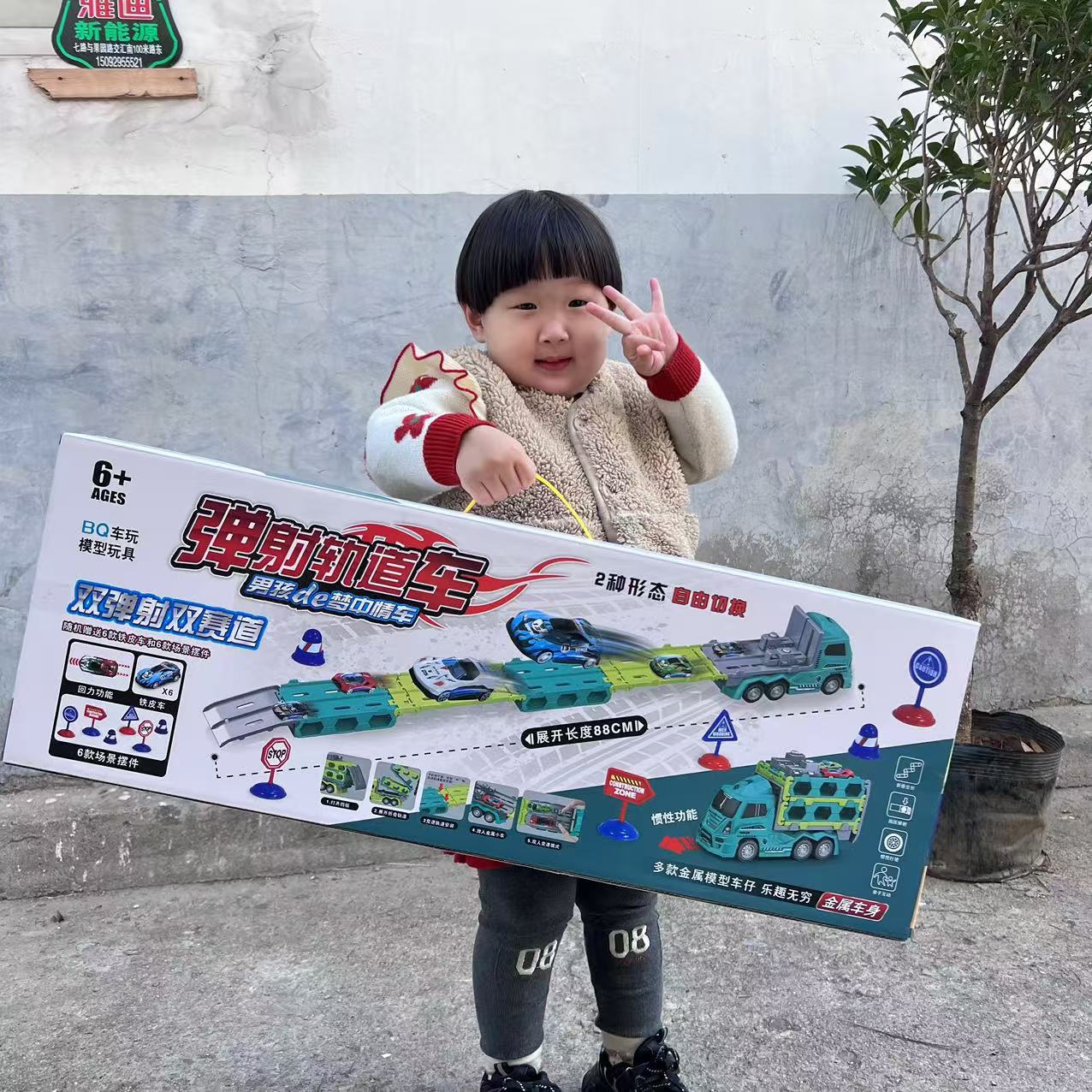 73cm 휴대용 선물 상자 더블 봄 더블 트랙 투석기 철도 자동차 기관 푸시 활동 큰 선물 장난감스토어 가기