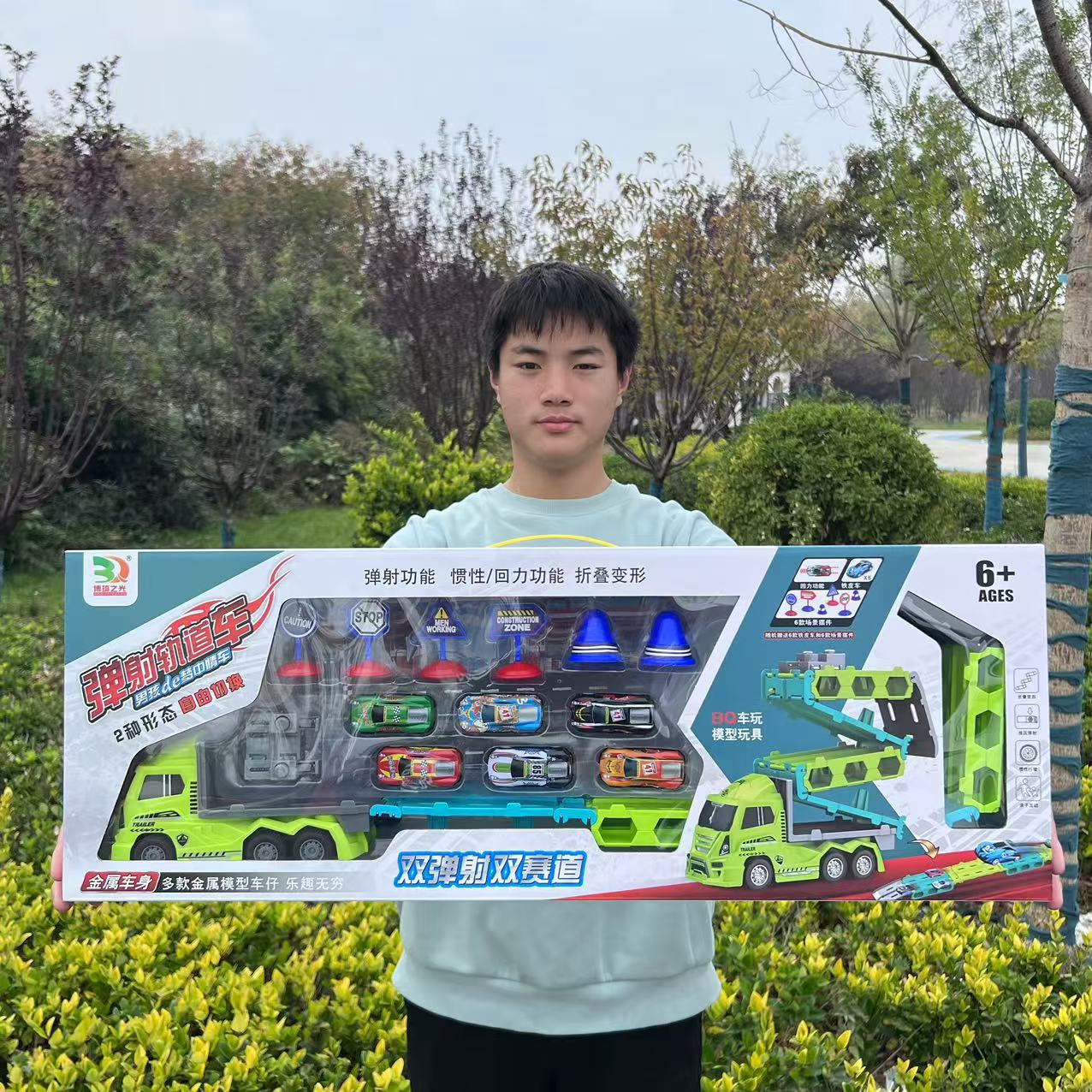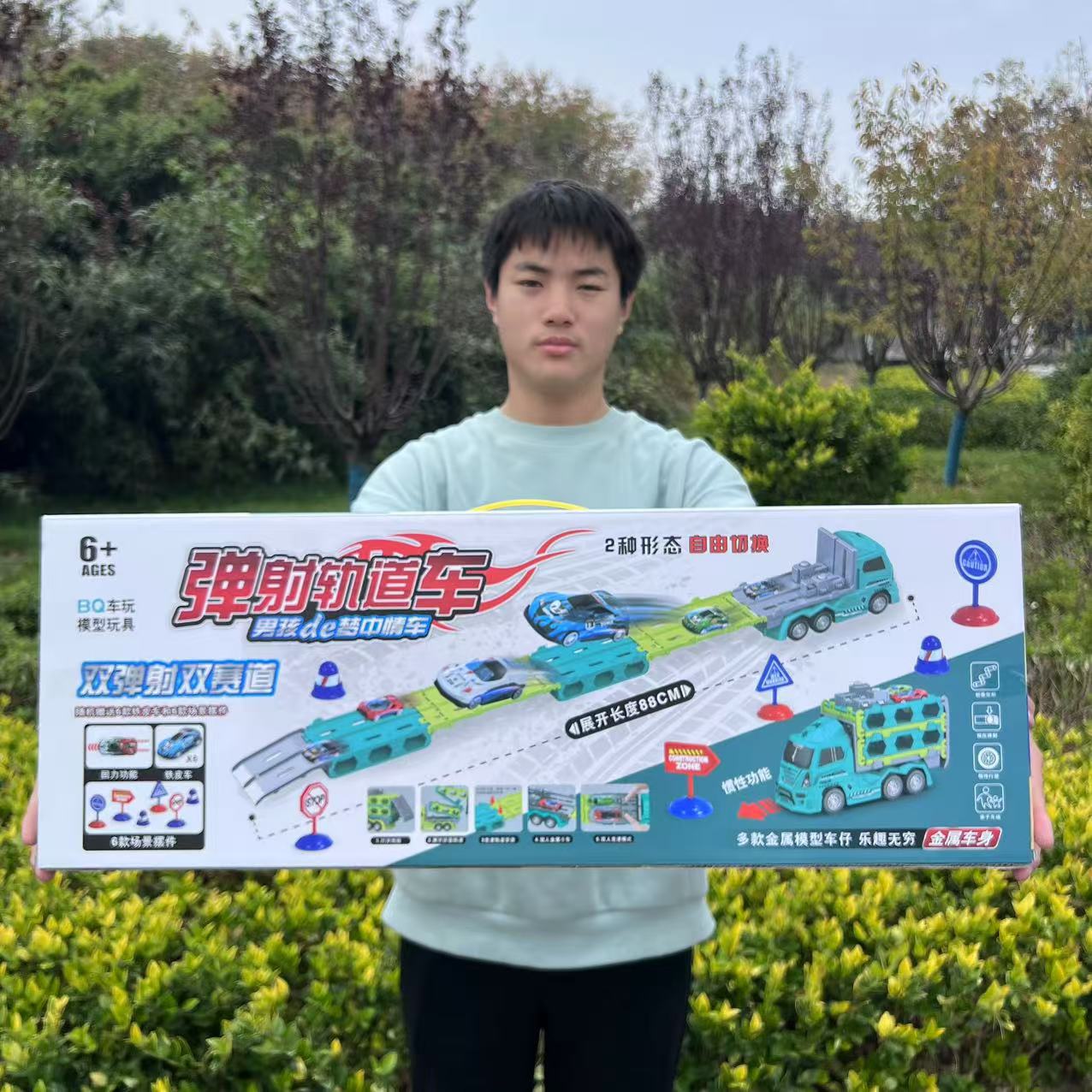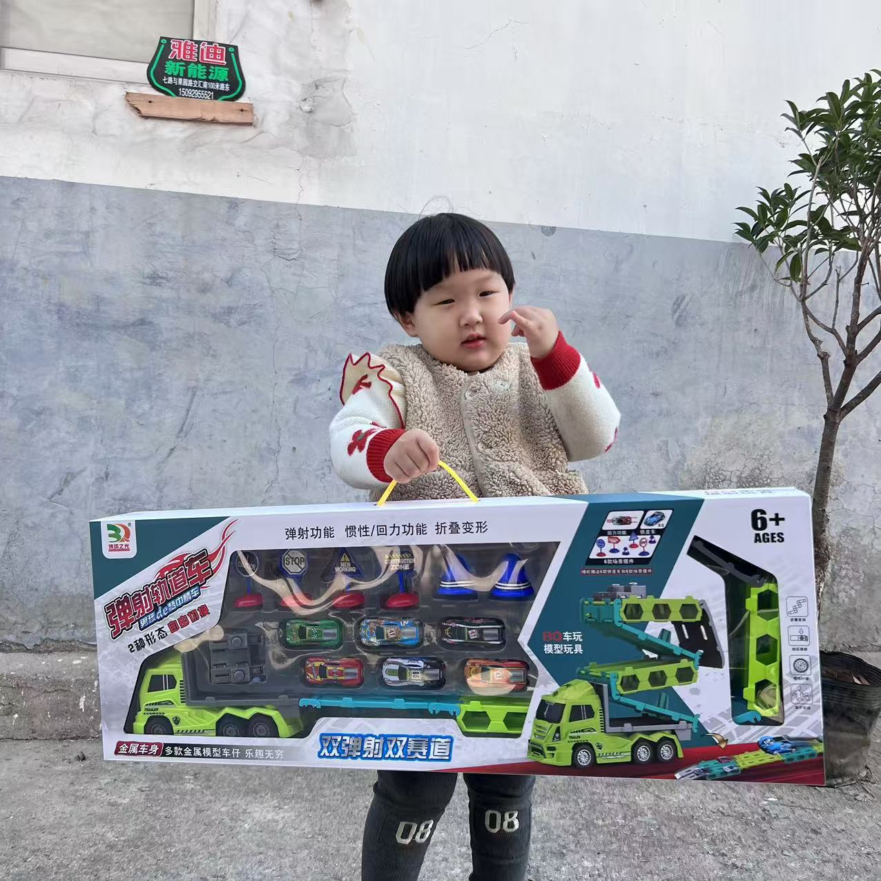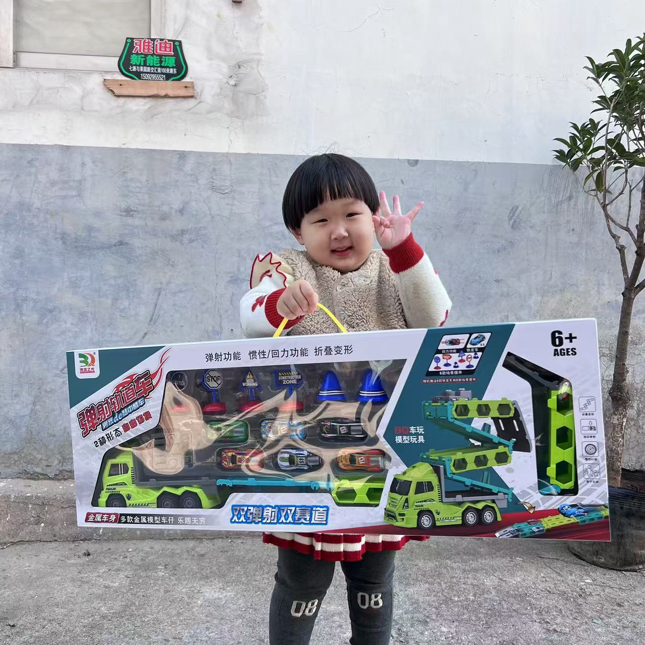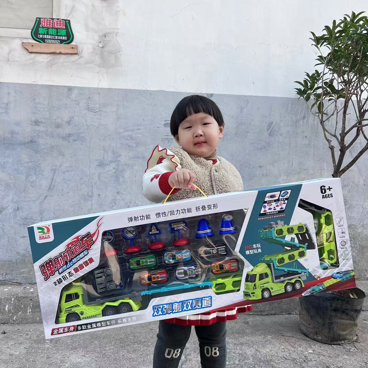 73cm 휴대용 선물 상자 더블 봄 더블 트랙 투석기 철도 자동차 기관 푸시 활동 큰 선물 장난감스토어 가기
