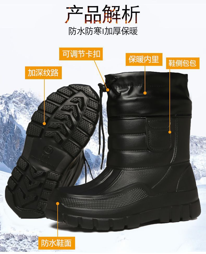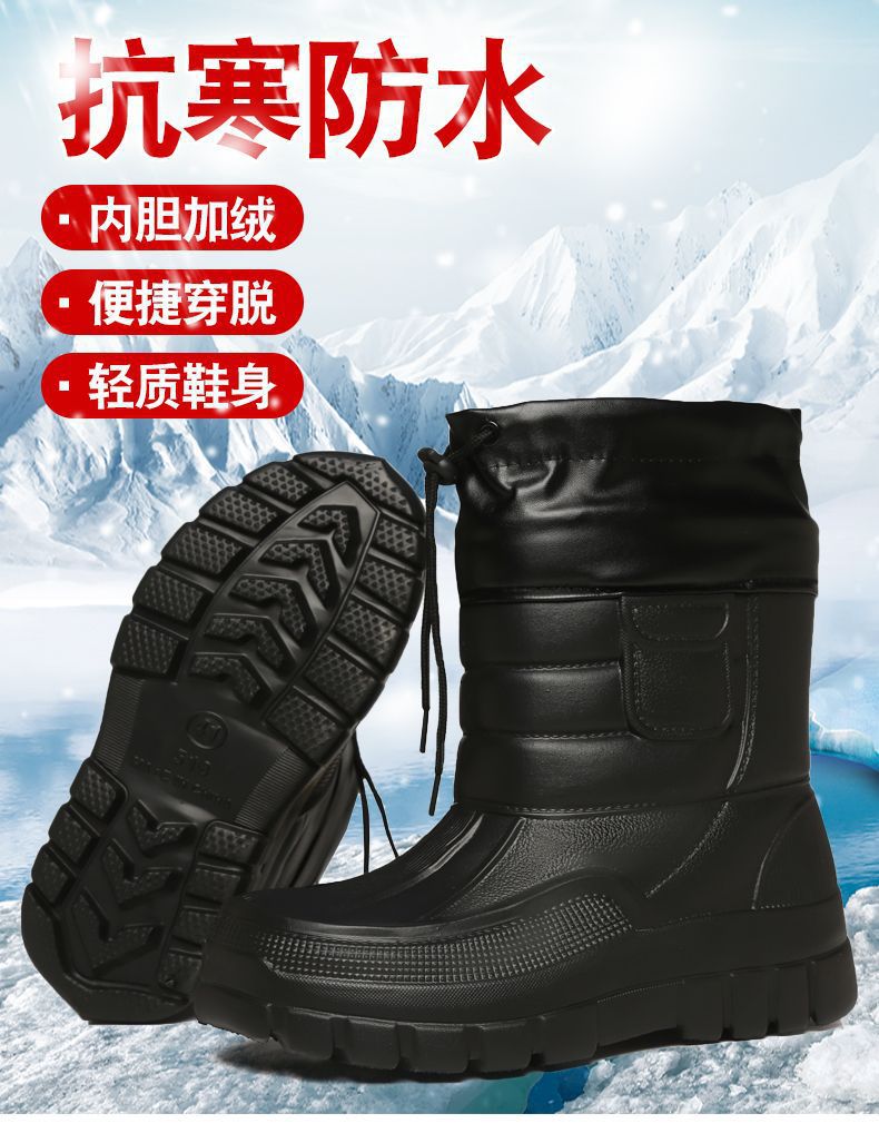 여분의 두꺼운 겨울 눈 부츠 남자의 방수 두꺼운 낚시 신발 두꺼운 하단 비 부츠 따뜻한 코튼 부츠 여성용 코튼 신발 따뜻한 미끄럼 방지