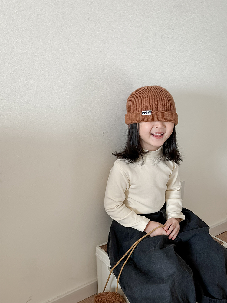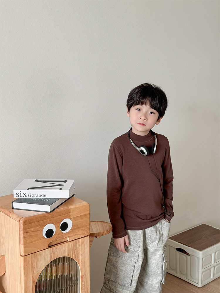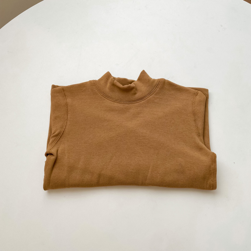 2025 가을 겨울 아동용 무봉제 얇은 벨벳 중간 칼라 이너웨어 남녀 공용 단색 상의 유아용 신축성 반하이넥