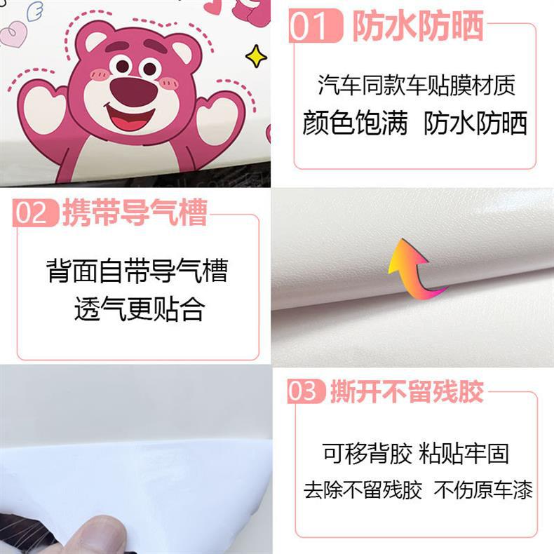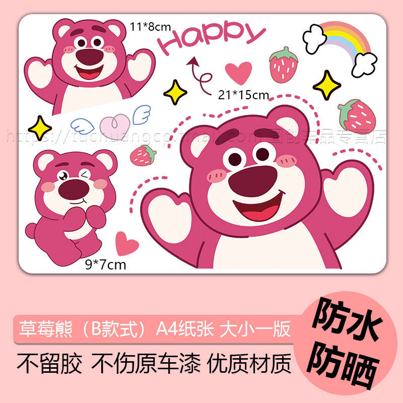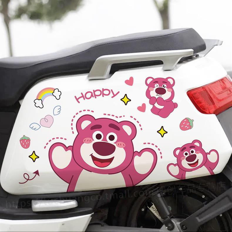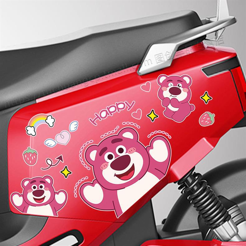 딸기 곰 전기 자동차 스티커 오토바이 장식 방수 스티커 배터리 자동차 성격 귀여운 창조적 인 바디 스크래치 마스크스토어 가기