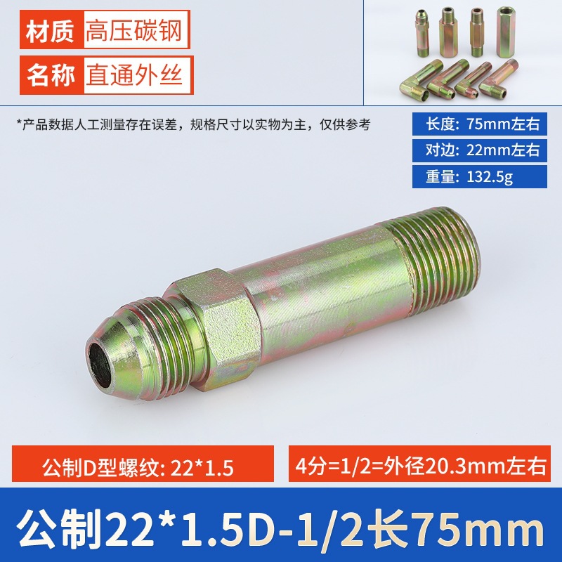 • 직선 미터법 22*1.5D 유형-1/2 길이 75mm