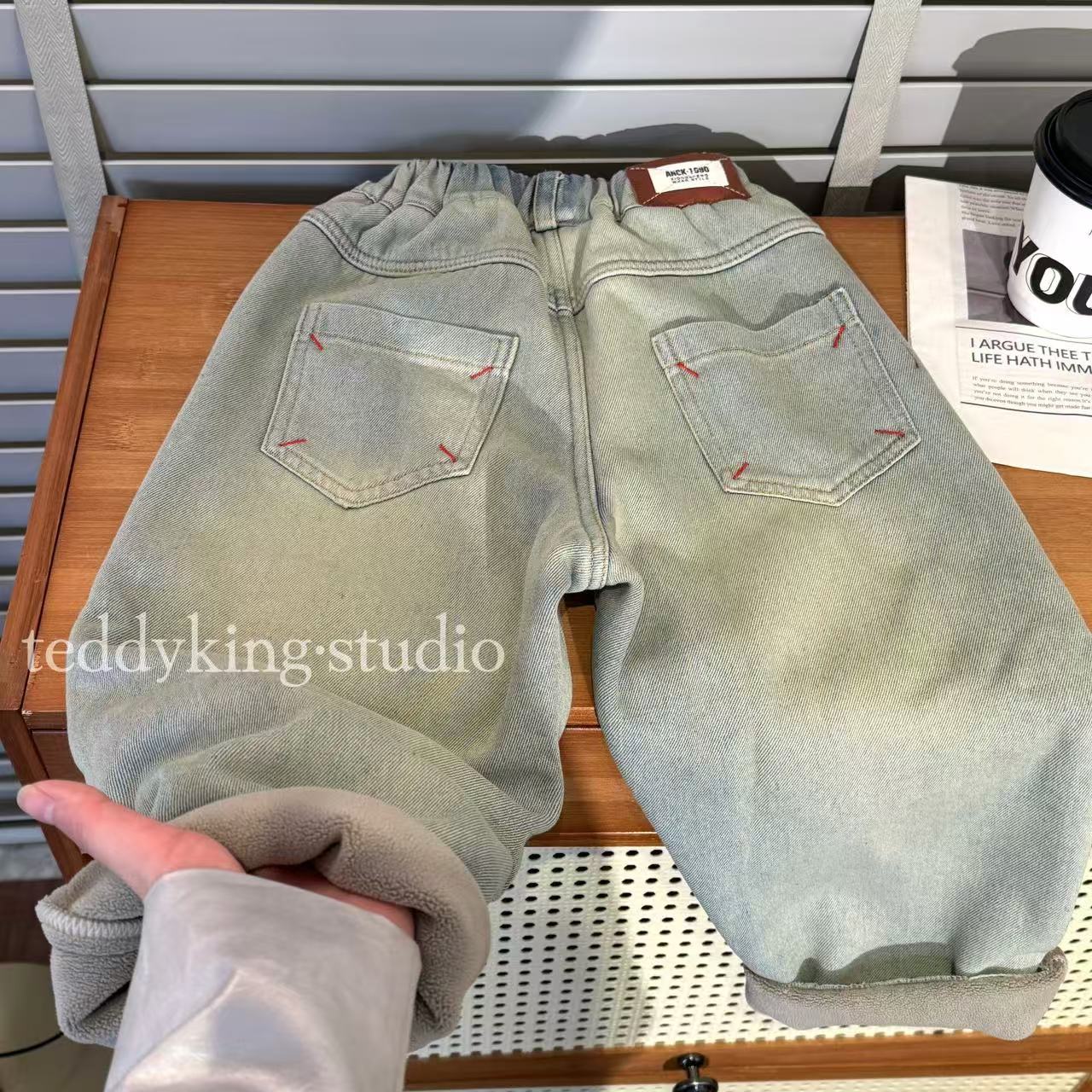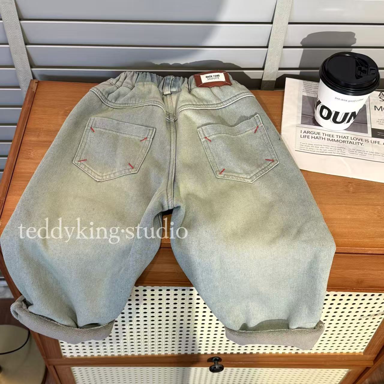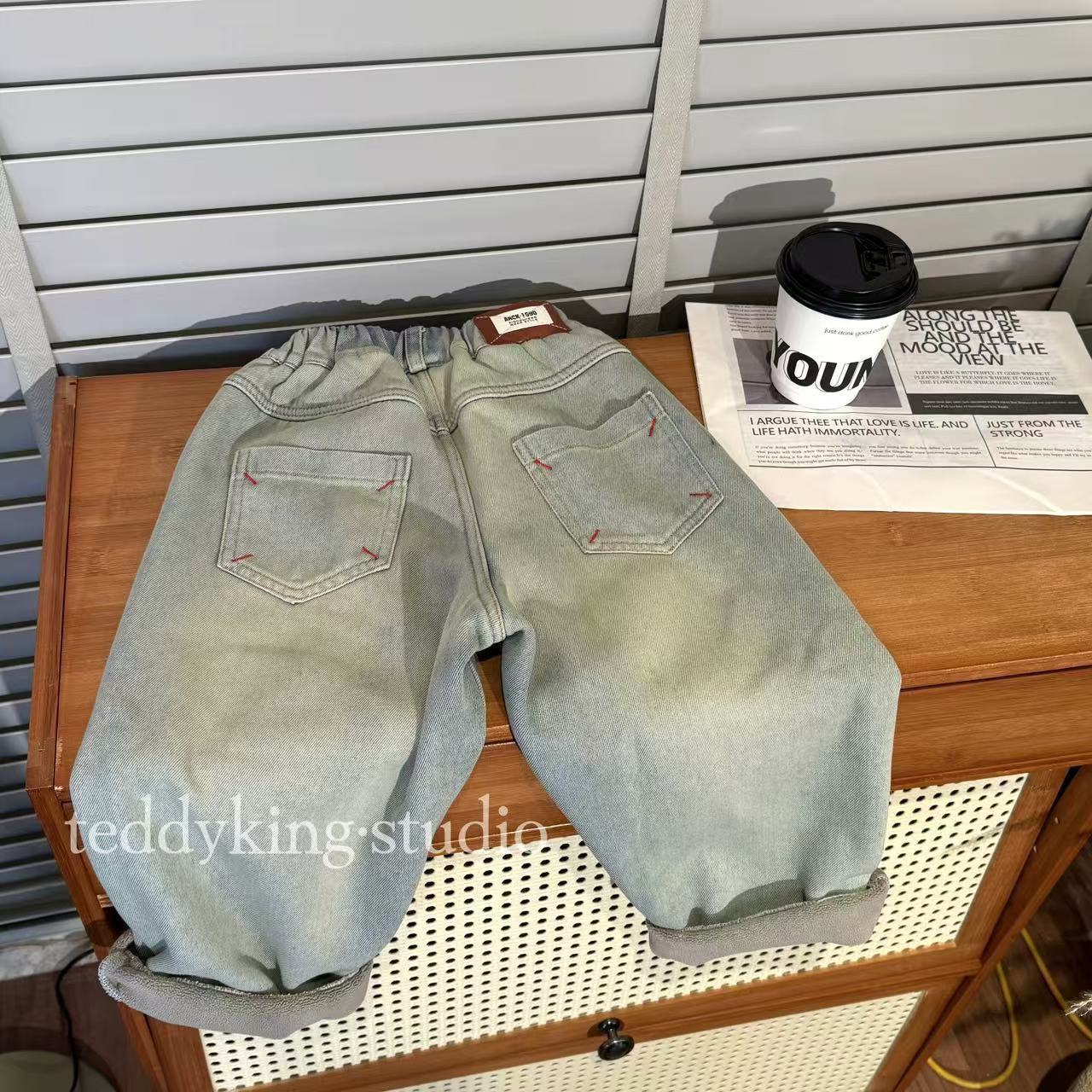 재고 있음! TXB24958 아동복 2025년 기모 및 두꺼운 워싱 데님 팬츠 남아 여아용 긴바지스토어 가기