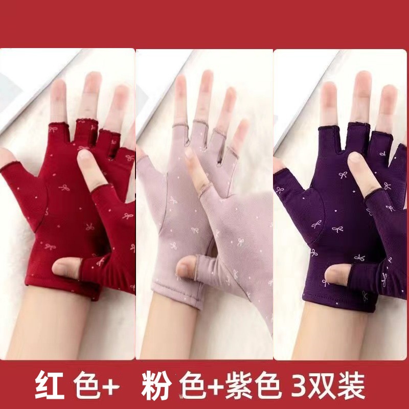 • [얇은 벨벳 반손가락 장갑] 프리사이즈