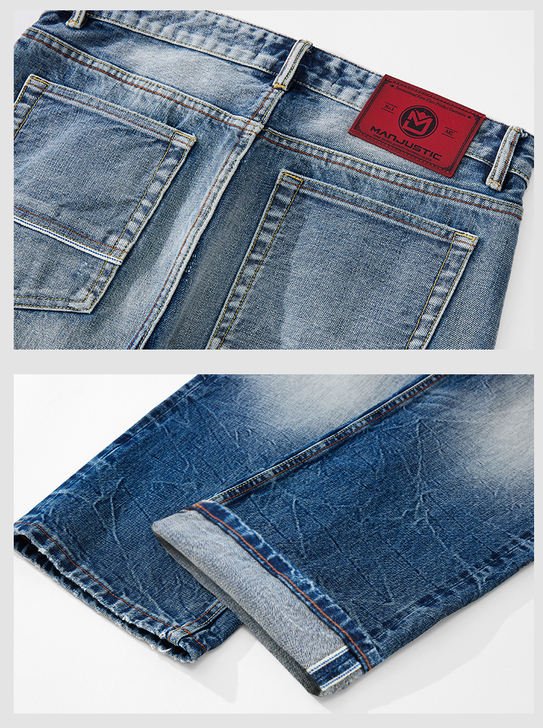가을과 겨울 붉은 귀 타닌 세탁 청바지 남성용 두꺼운 새 슬림 핏 스트레이트 스트레치 남성용 캐주얼 롱 팬츠스토어 가기