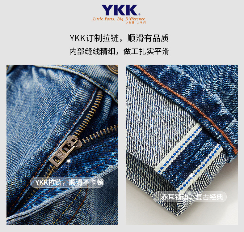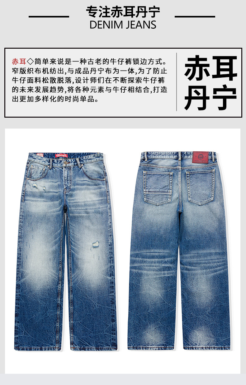 가을과 겨울 붉은 귀 타닌 세탁 청바지 남성용 두꺼운 새 슬림 핏 스트레이트 스트레치 남성용 캐주얼 롱 팬츠