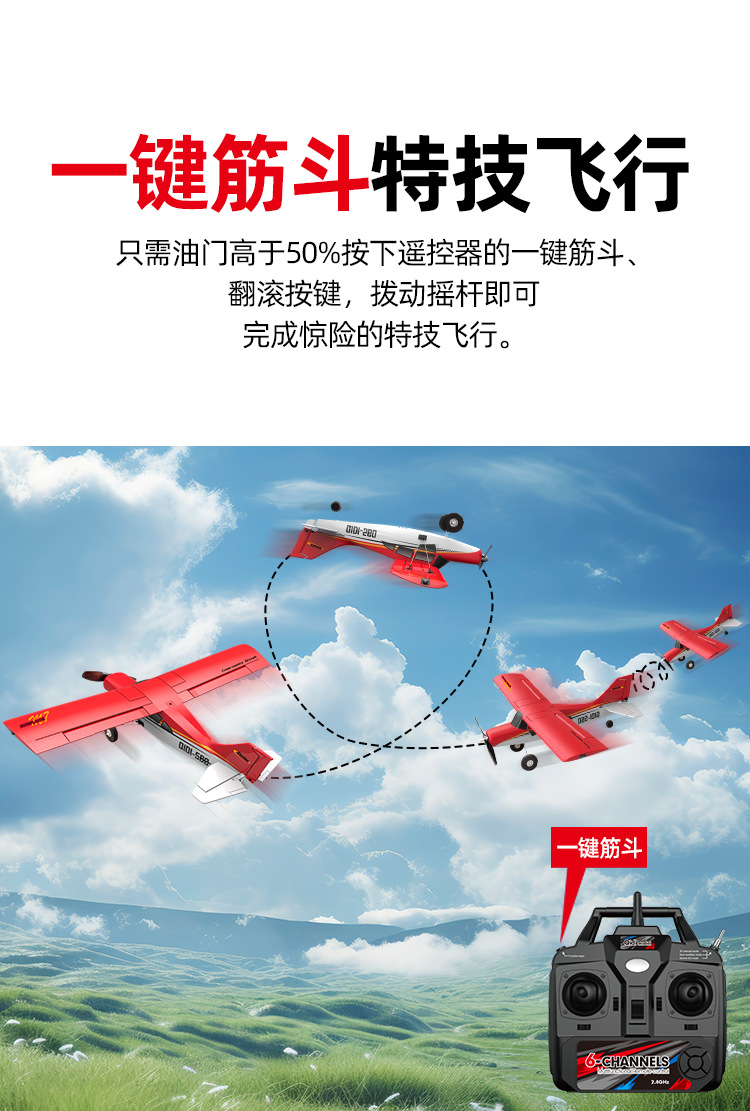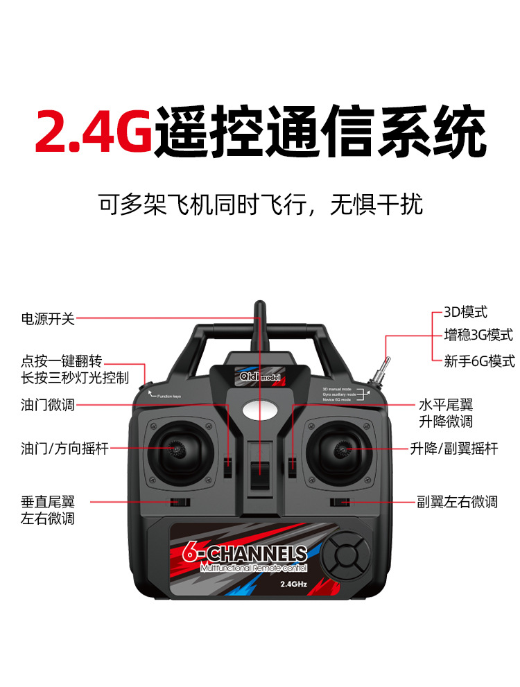 产品功能:自动平衡,4通滑翔遥控飞机(上升、下降、左转、右转、左偏航、右偏航、前翻滚飞行、控制灯光)