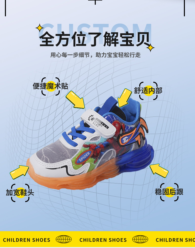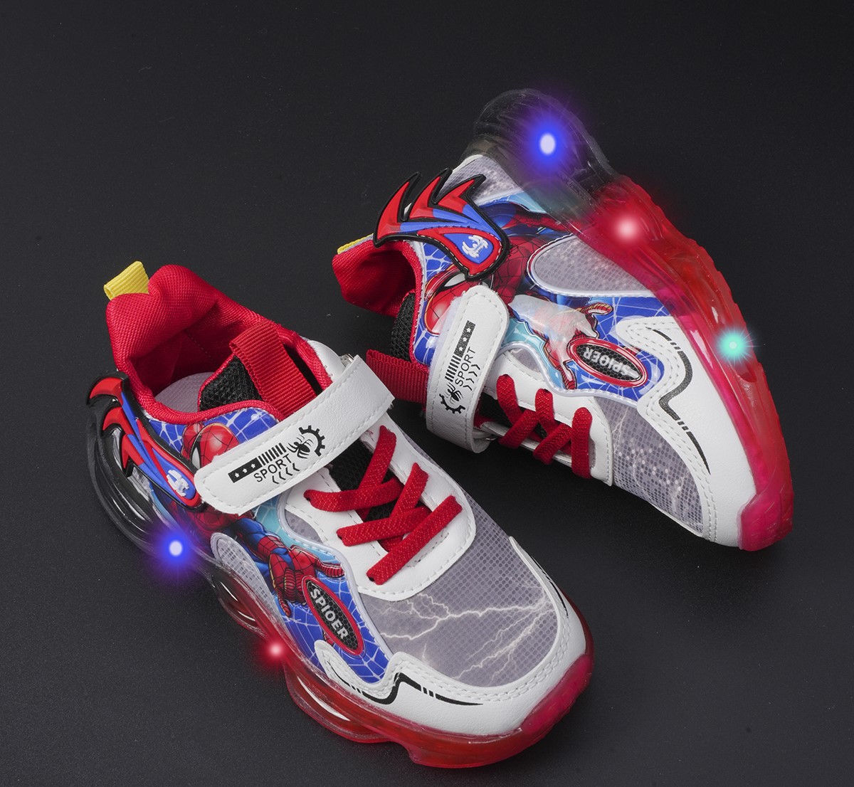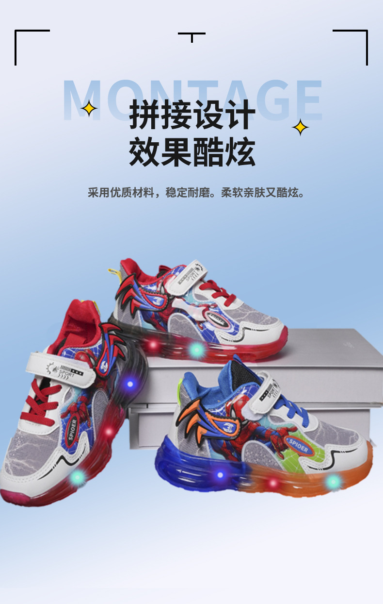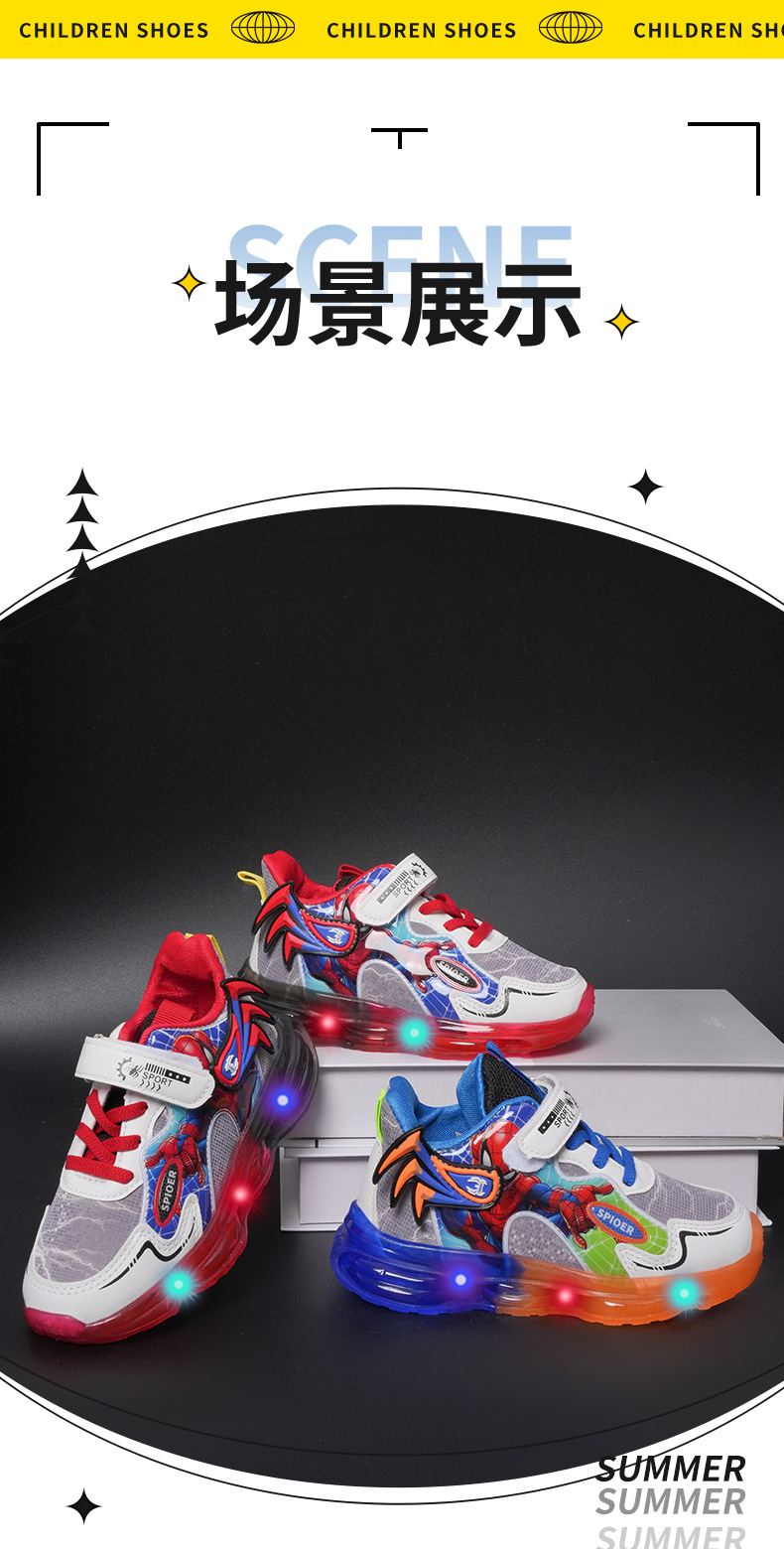 국경 만화 소년 신발 잘 생긴 패션 1-6 세 어린이 빛나는 운동화 통기성 부드러운 바닥 벨크로 신발스토어 가기