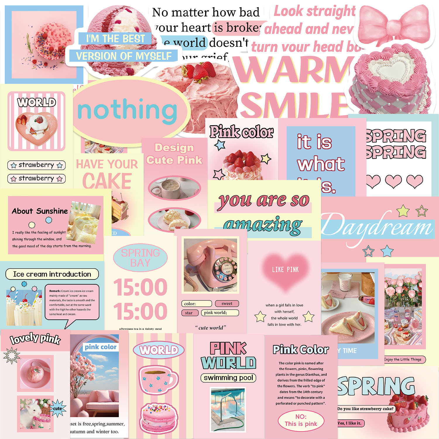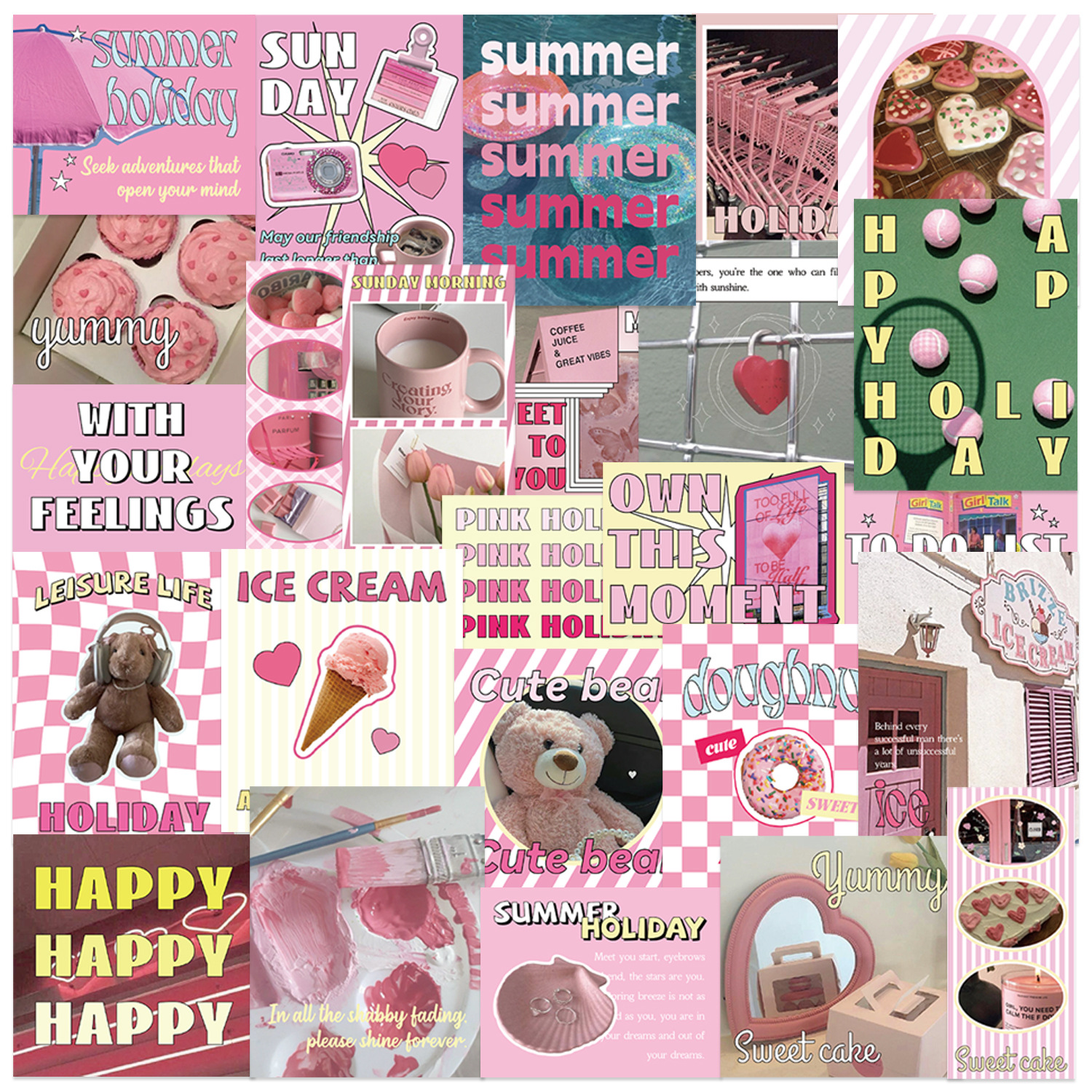 30 핑크 퍼플 컬러 시리즈 스티커 휴일 장식 어린이 장난감 전화 케이스 노트북 방수 스티커