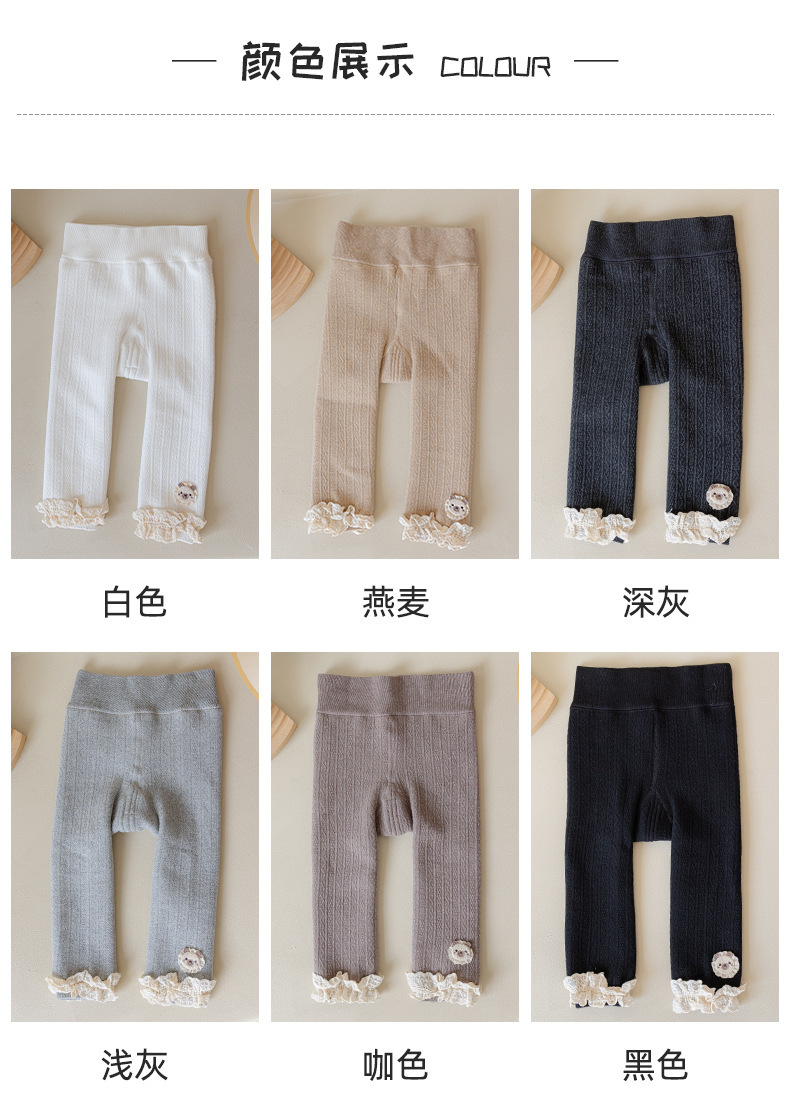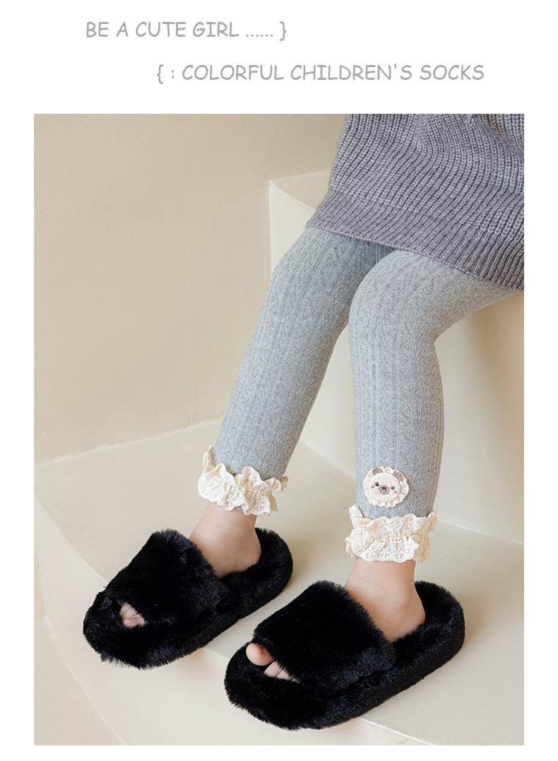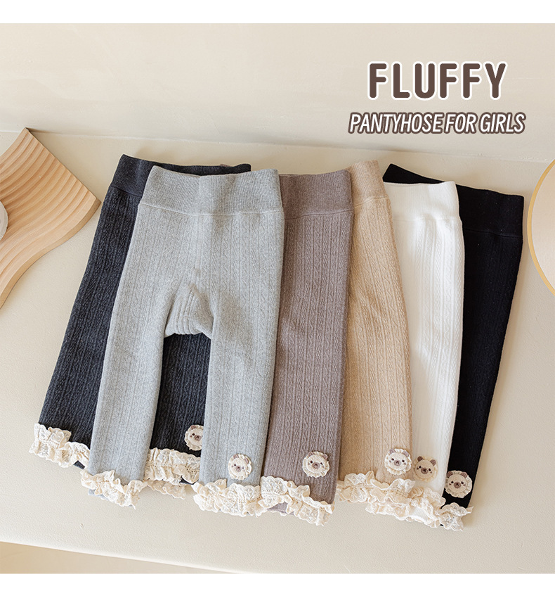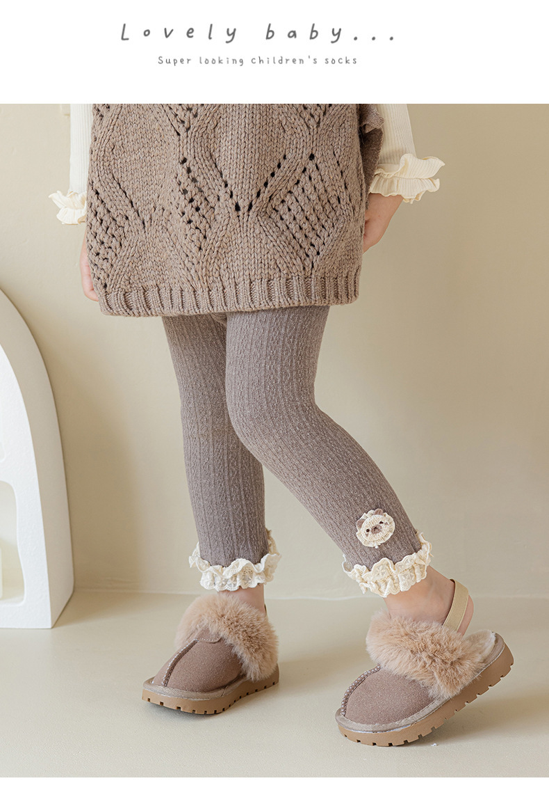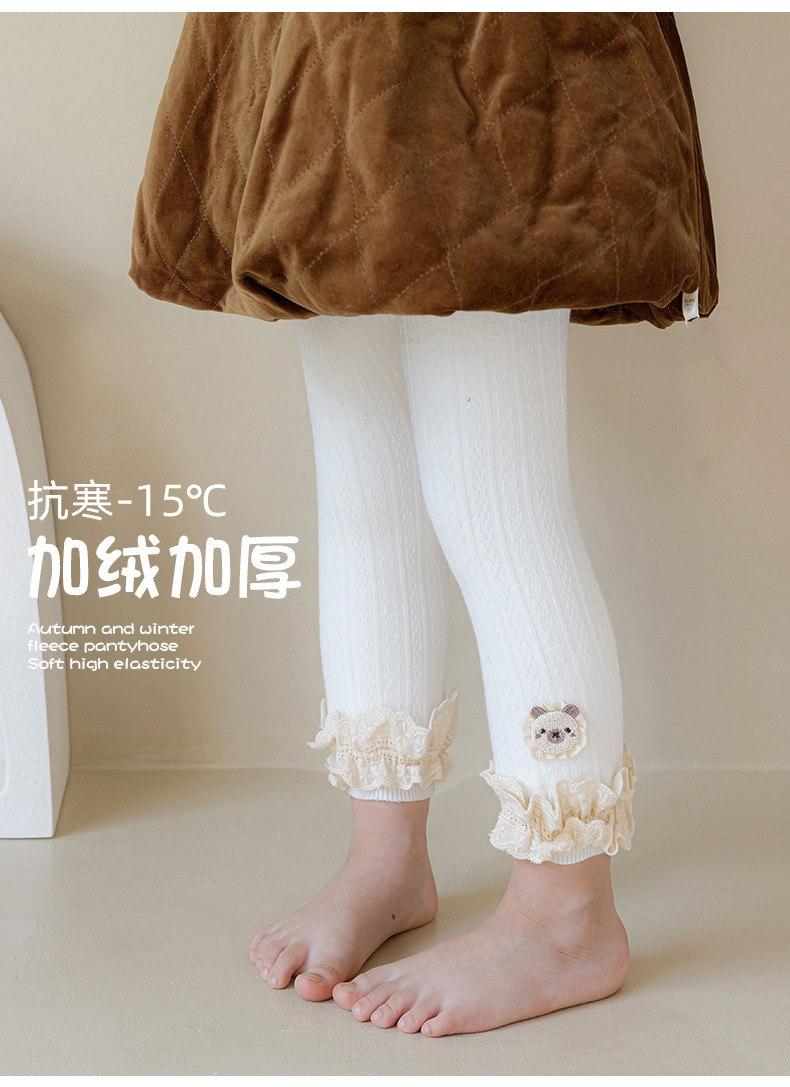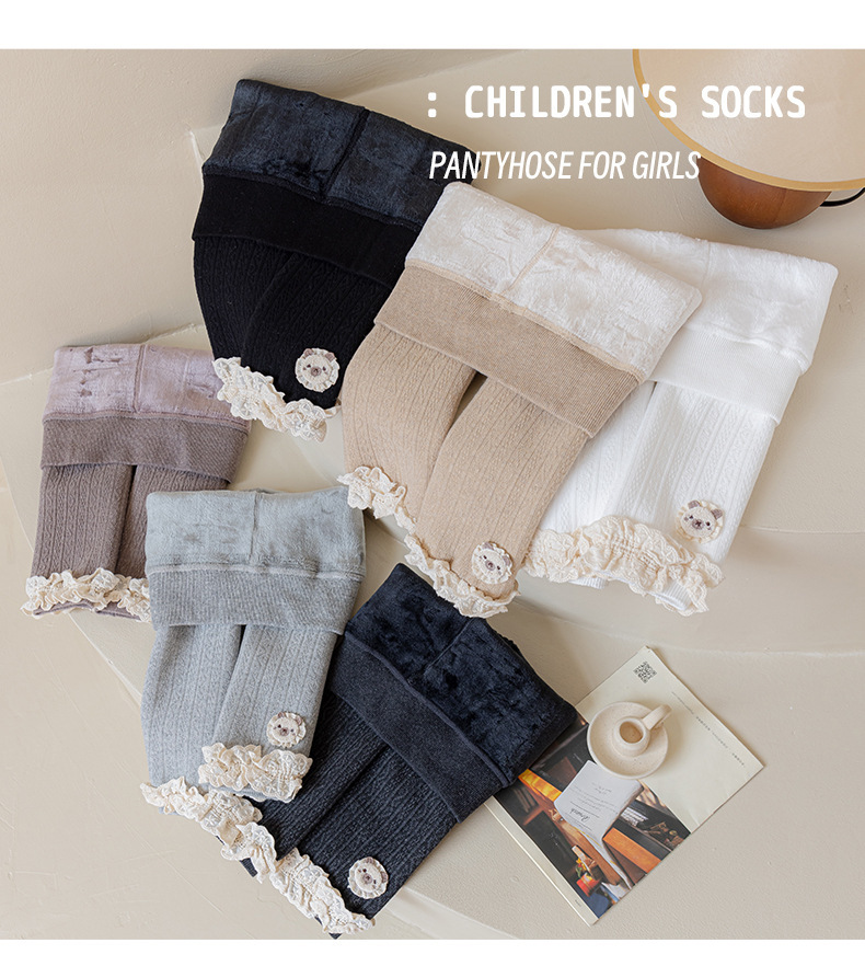소녀 9 점 자수 곰 기모 두꺼운 바닥 양말 가을과 겨울 아기 외부 착용 팬티 스타킹 어린이를위한 따뜻한