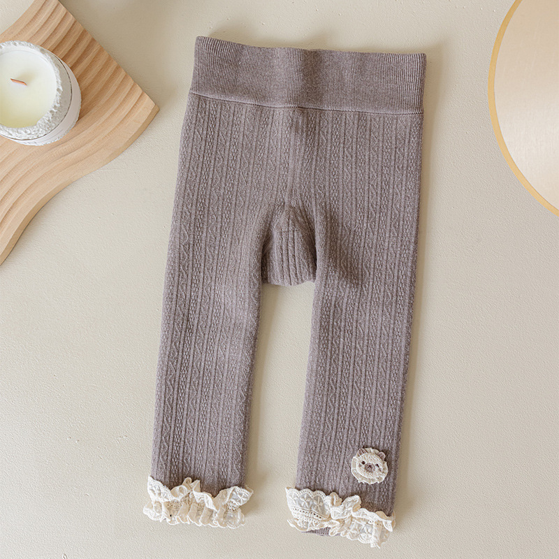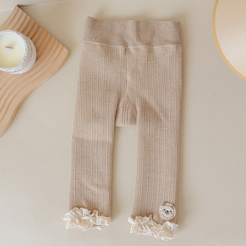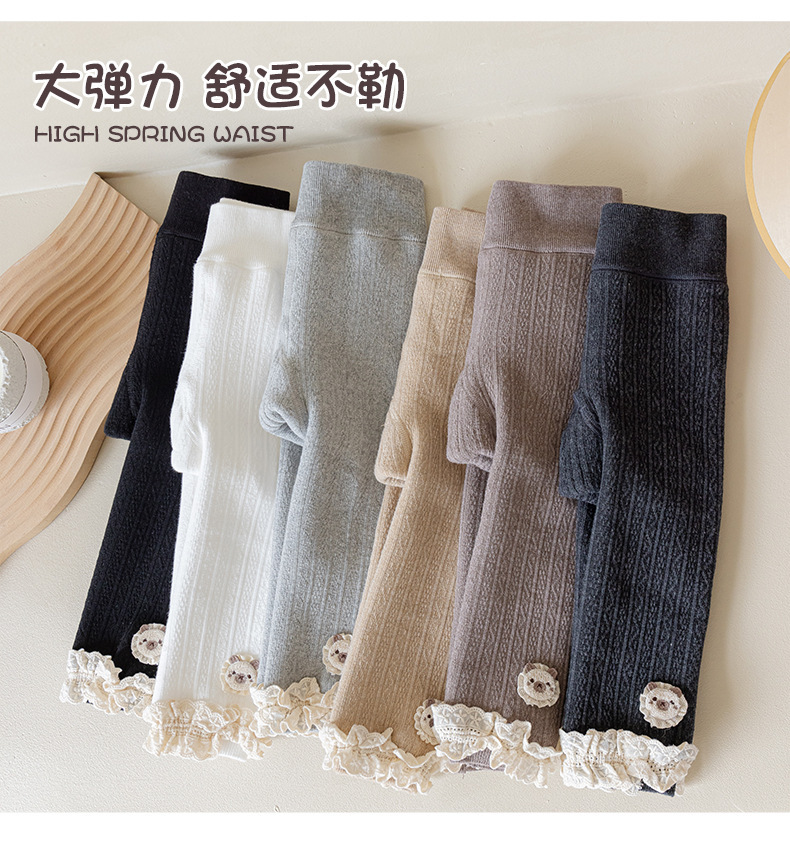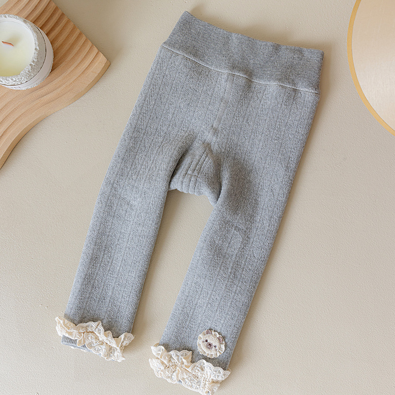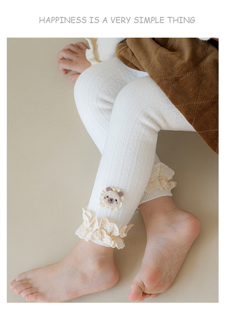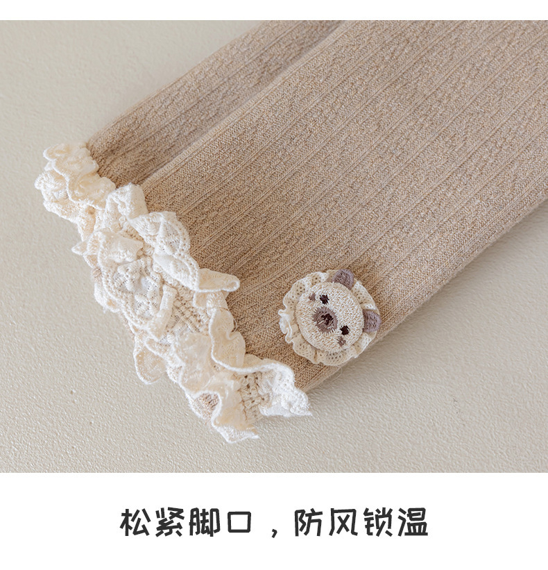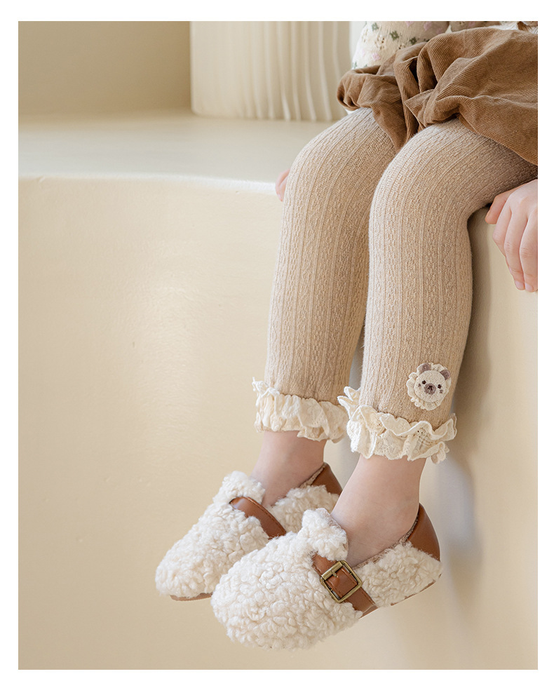 소녀 9 점 자수 곰 기모 두꺼운 바닥 양말 가을과 겨울 아기 외부 착용 팬티 스타킹 어린이를위한 따뜻한