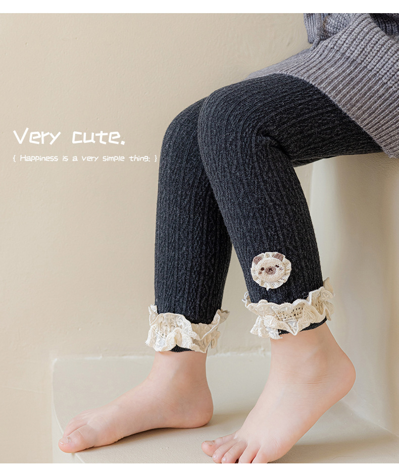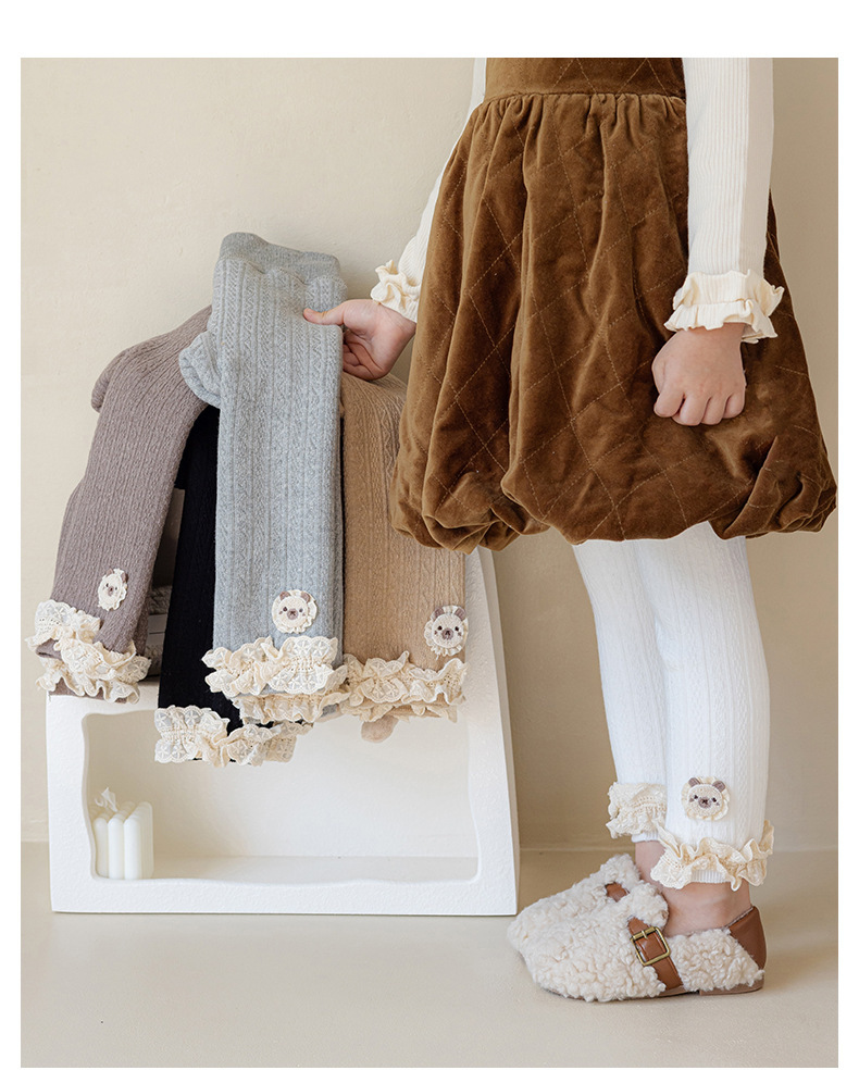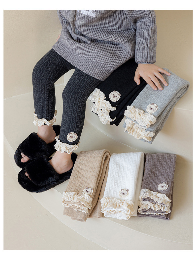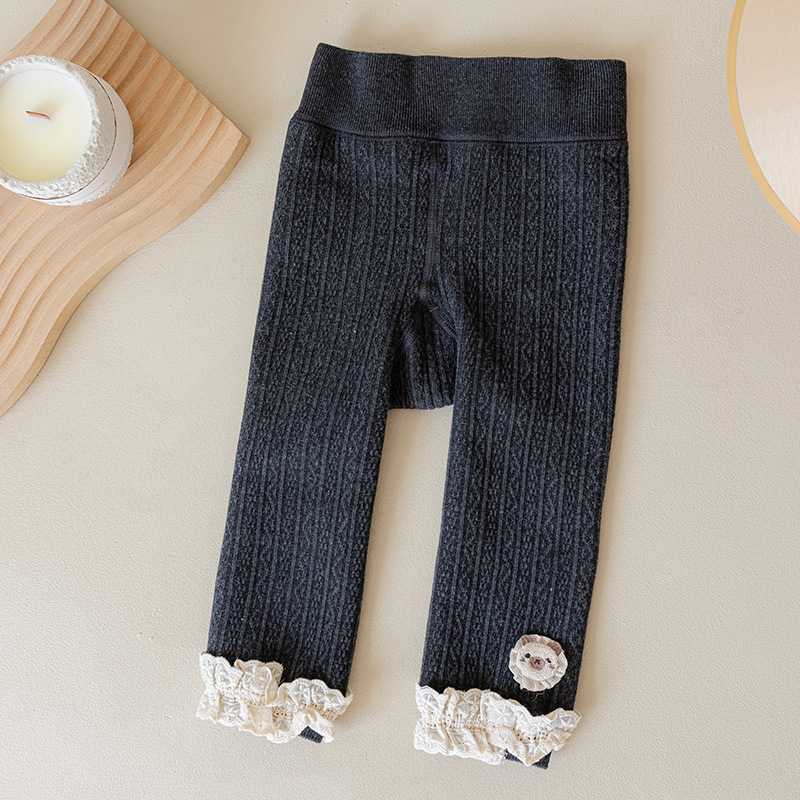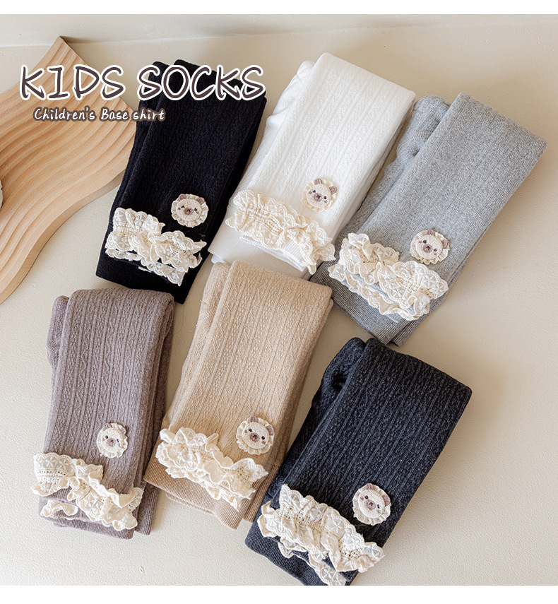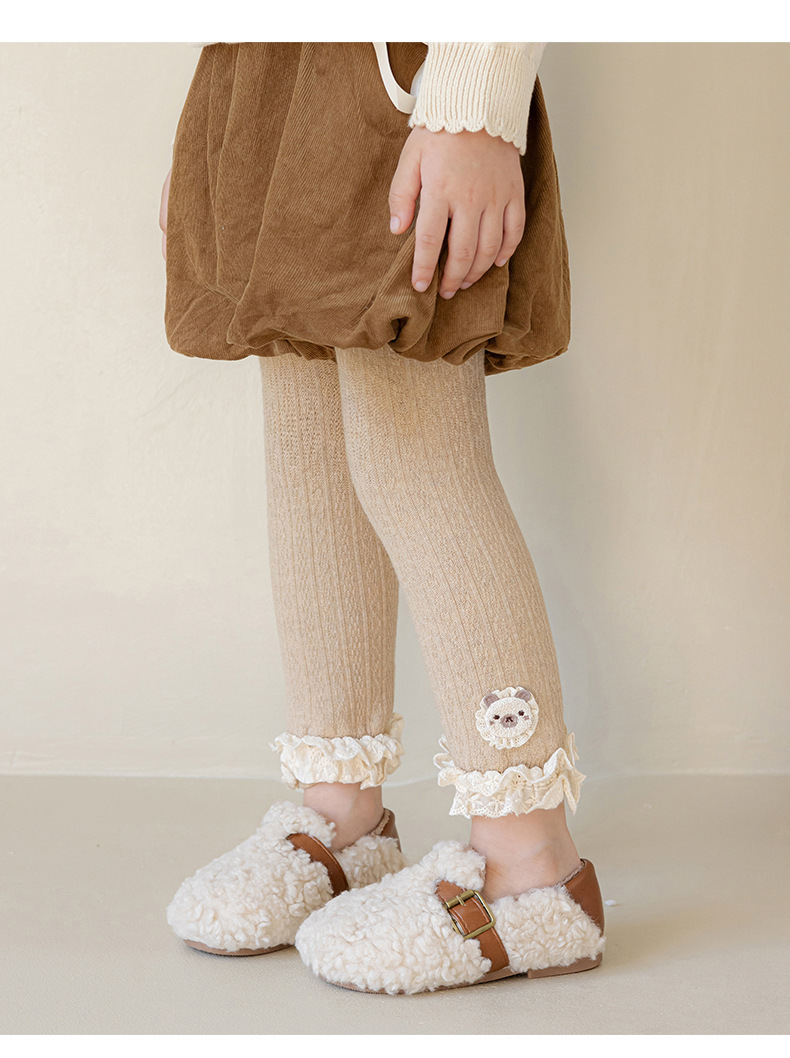 소녀 9 점 자수 곰 기모 두꺼운 바닥 양말 가을과 겨울 아기 외부 착용 팬티 스타킹 어린이를위한 따뜻한