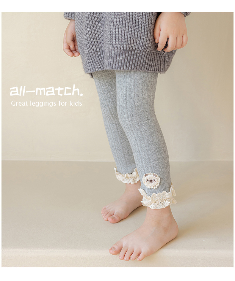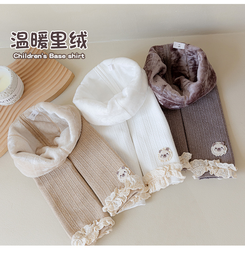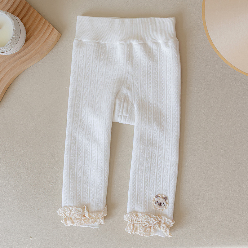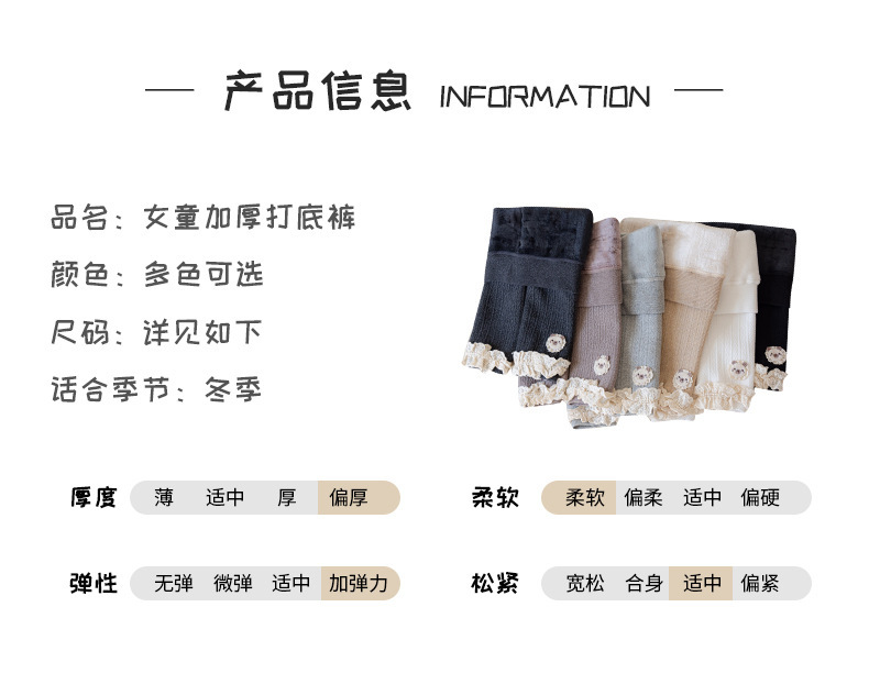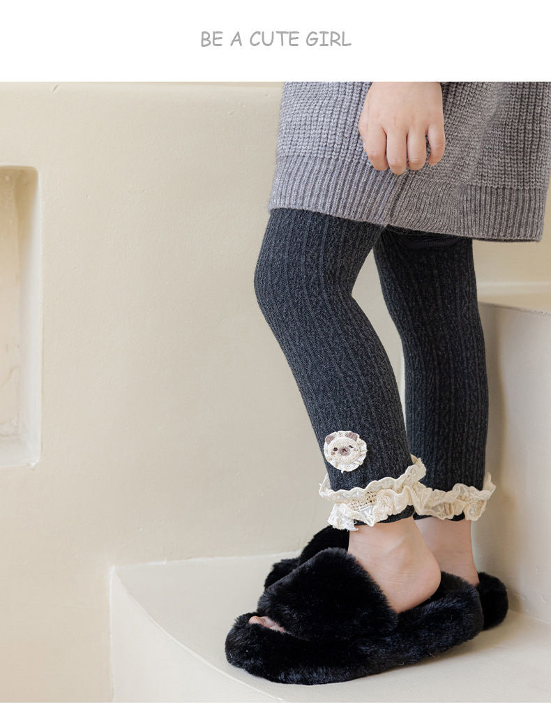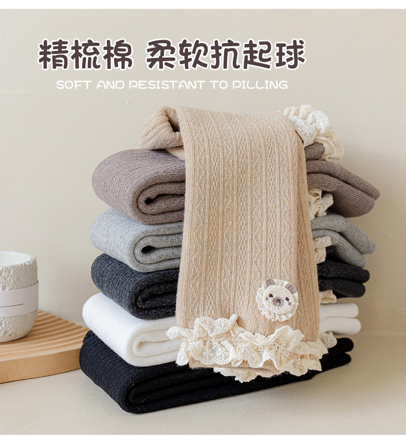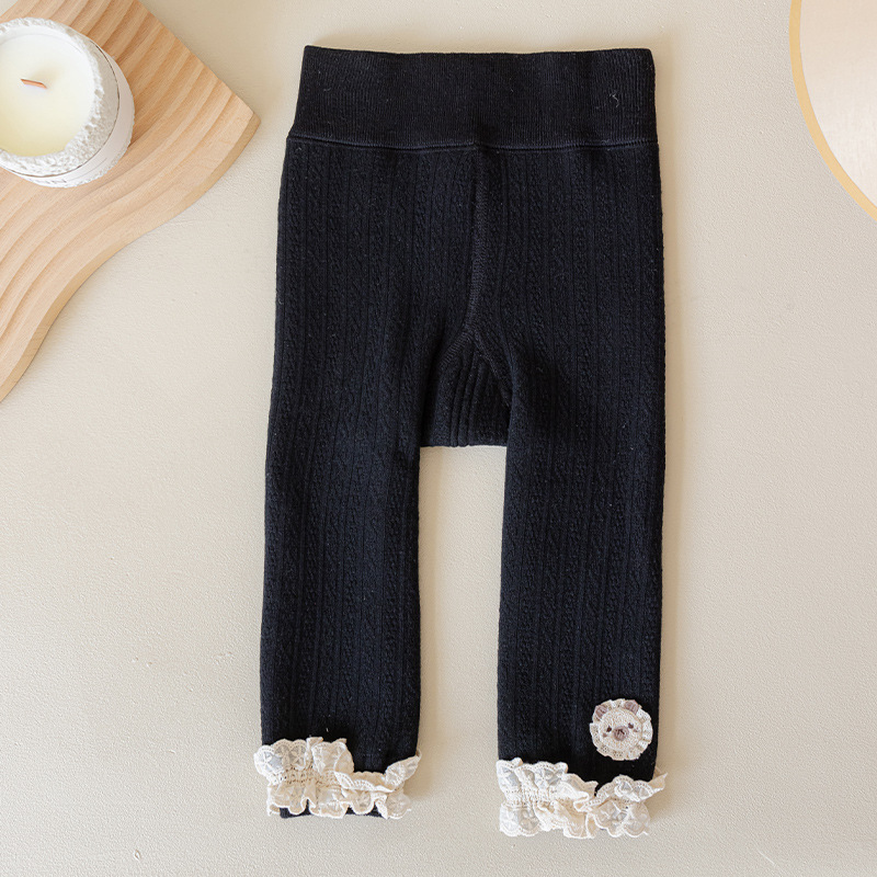 소녀 9 점 자수 곰 기모 두꺼운 바닥 양말 가을과 겨울 아기 외부 착용 팬티 스타킹 어린이를위한 따뜻한