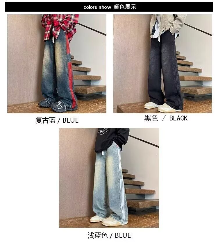 청바지 남성용 미국식 레트로 3 바 봄과 가을 패션 브랜드 하이 스트리트 스트레이트 바지는 느슨한 와이드 레그 팬츠
