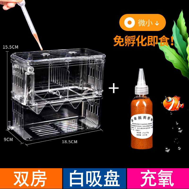 • 사육 패키지: 후크 인큐베이터 격리 상자 + 열린 새우 알 + 먹이 튜브