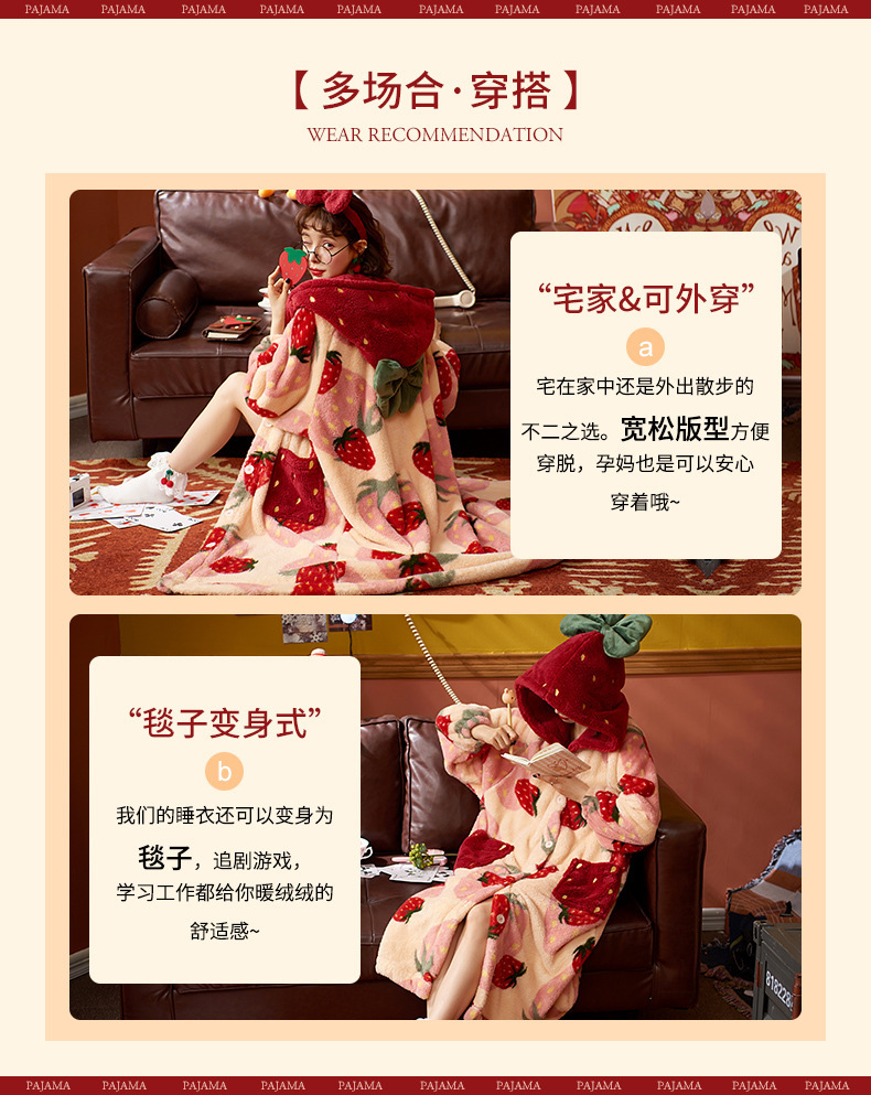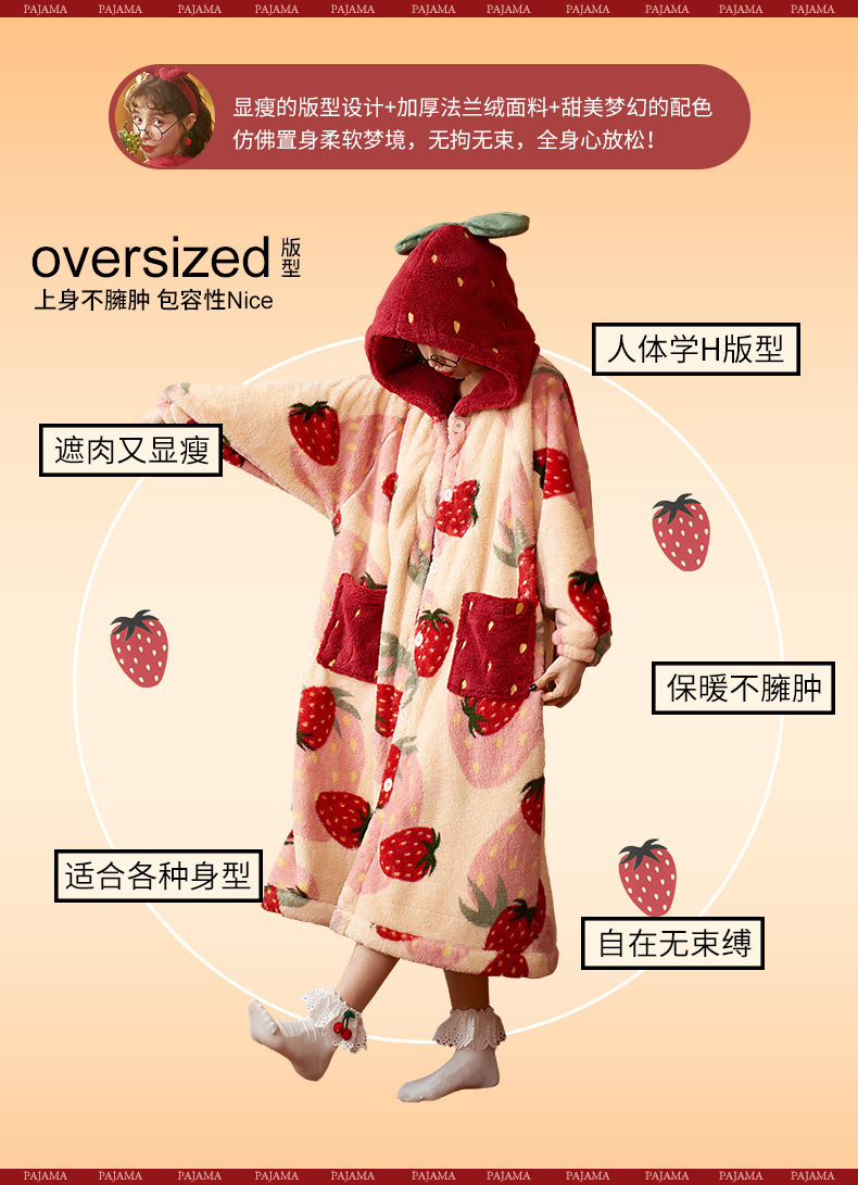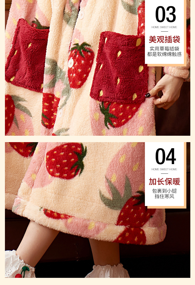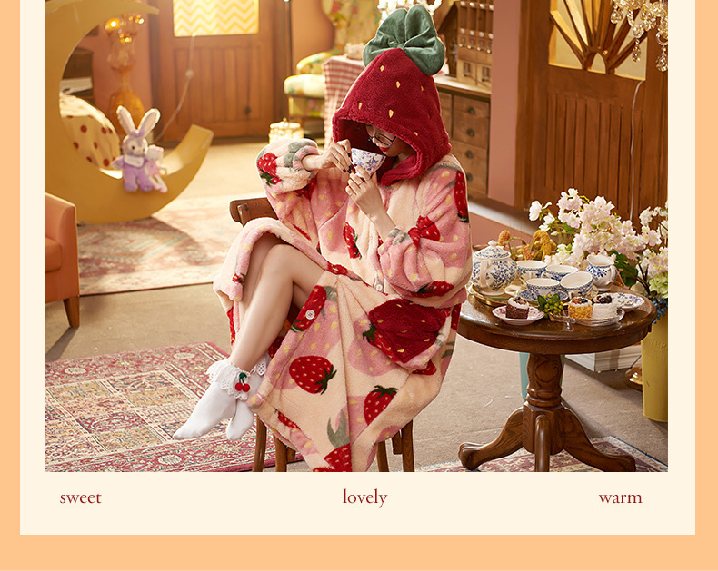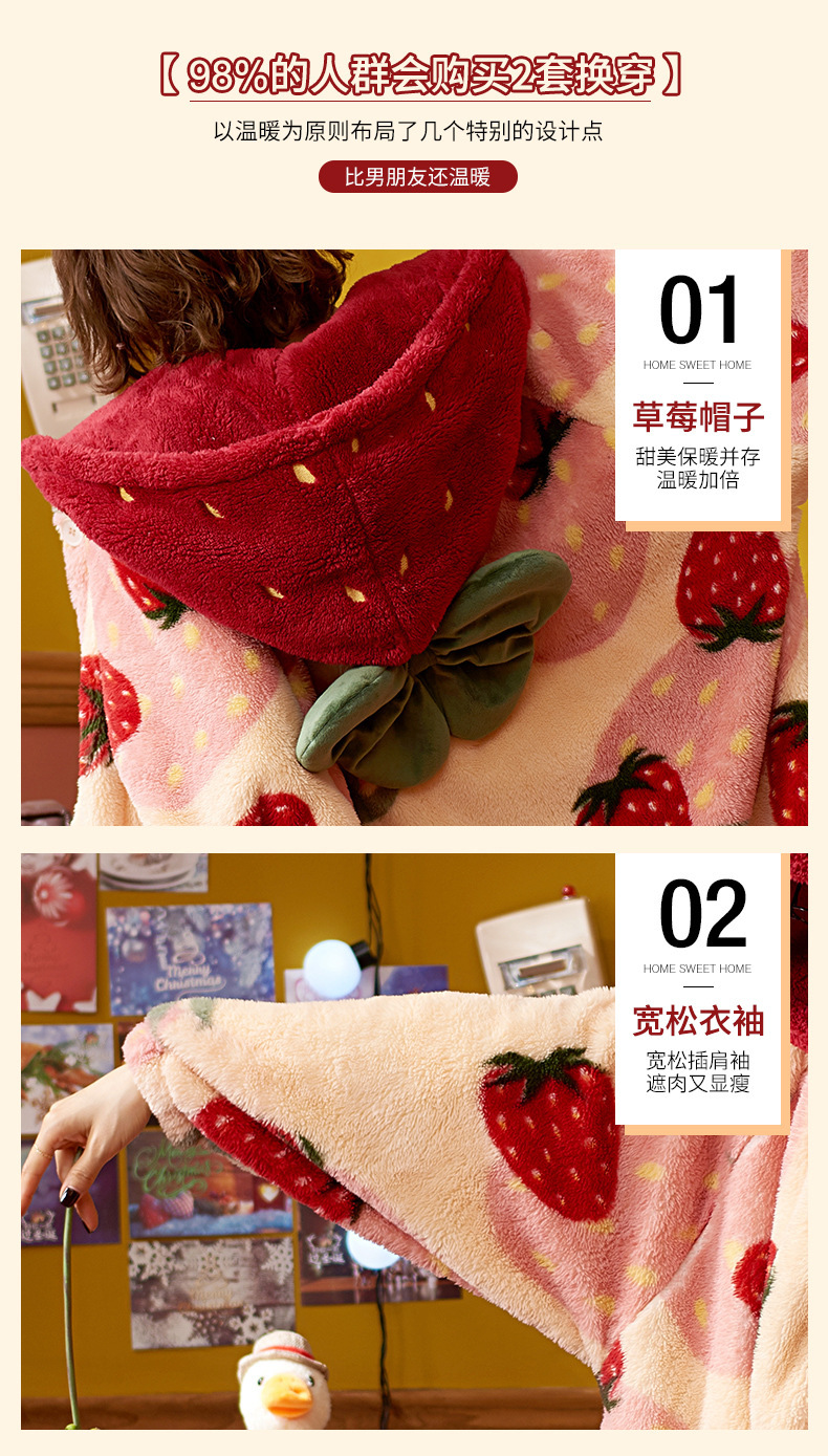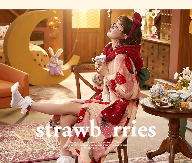 숙녀 플란넬 잠옷 가을과 겨울 패딩 카디건 후드 로브 귀여운 밀짚 베리 코트 공장 도매스토어 가기
