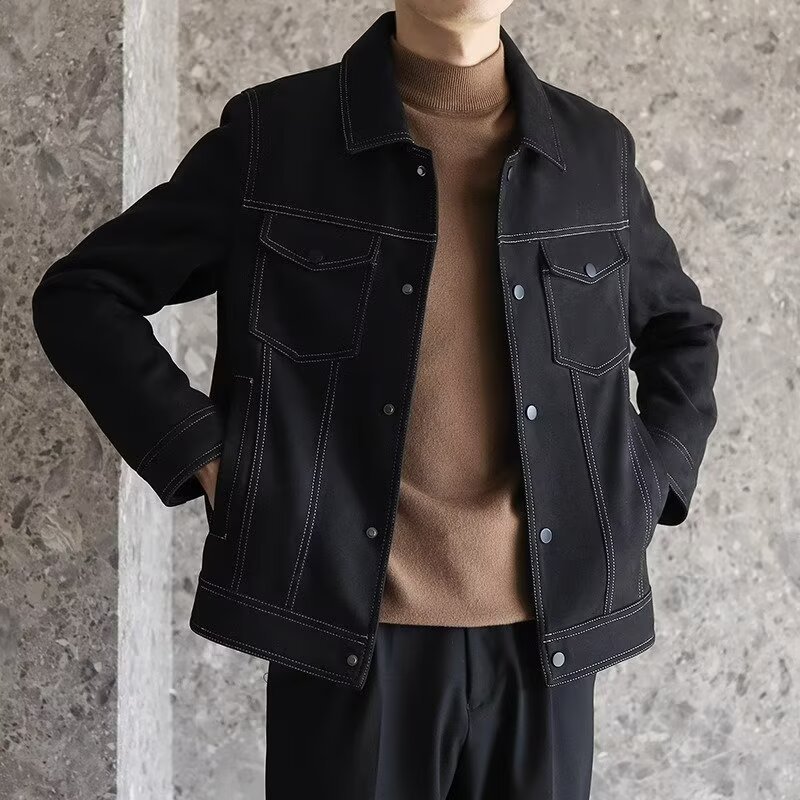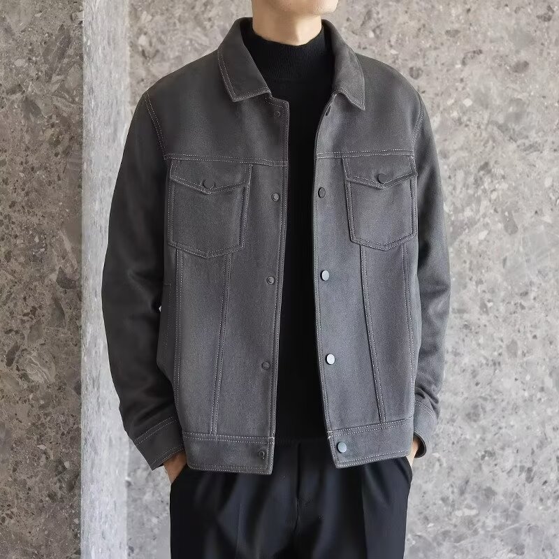 스웨이드 재킷 남자 가을 2024 새로운 패션 브랜드 남자 캐주얼 패션 옷깃 바느질 남자 탑
