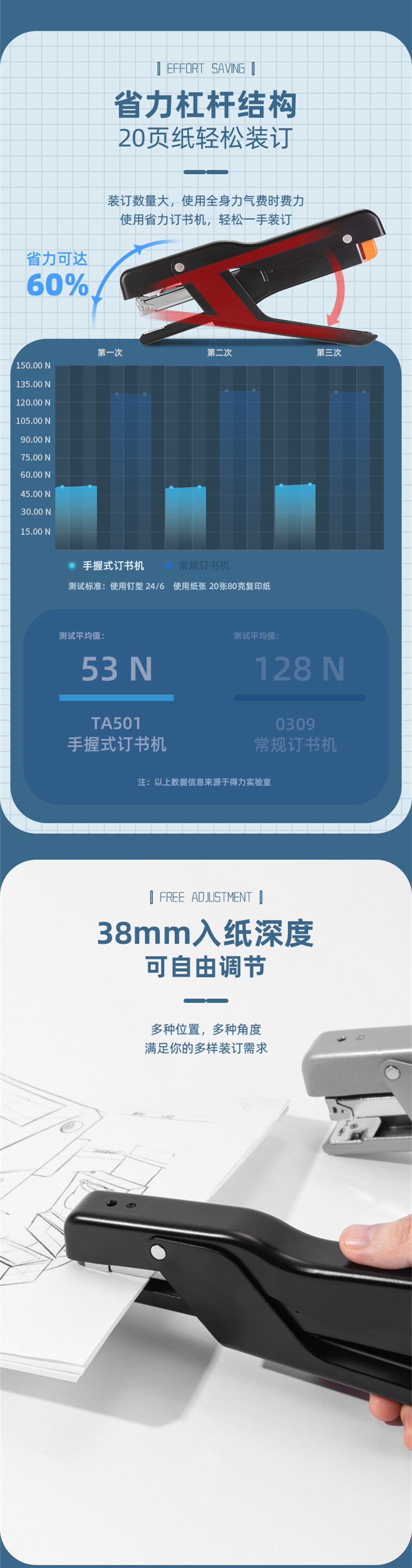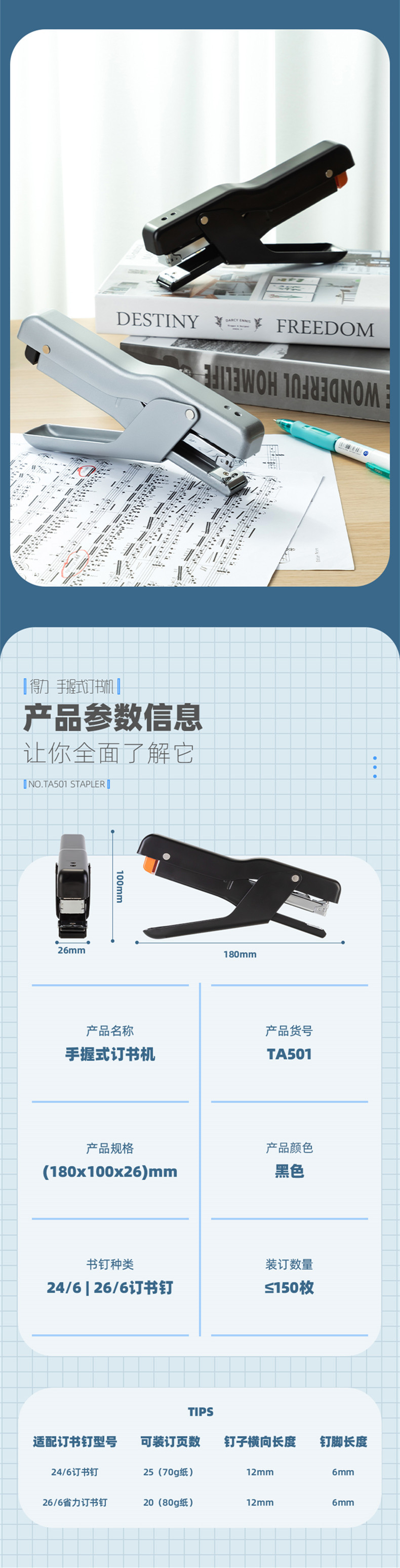 델리 핸드 헬드 메탈릭 내구성 스테이플러 테이크 어웨이 포장 휴대용 핸드 헬드 네일 12 번 TA501스토어 가기