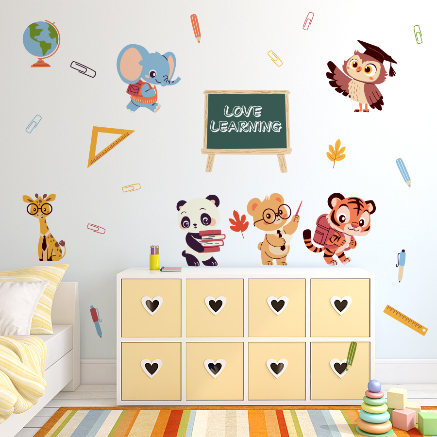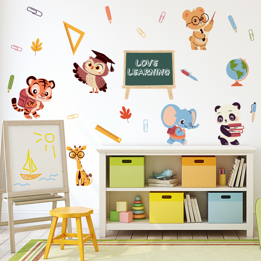 만화 귀여운 작은 동물 교실 자기 접착 벽 스티커 어린이 방 유치원 장식 스티커 BR3190F