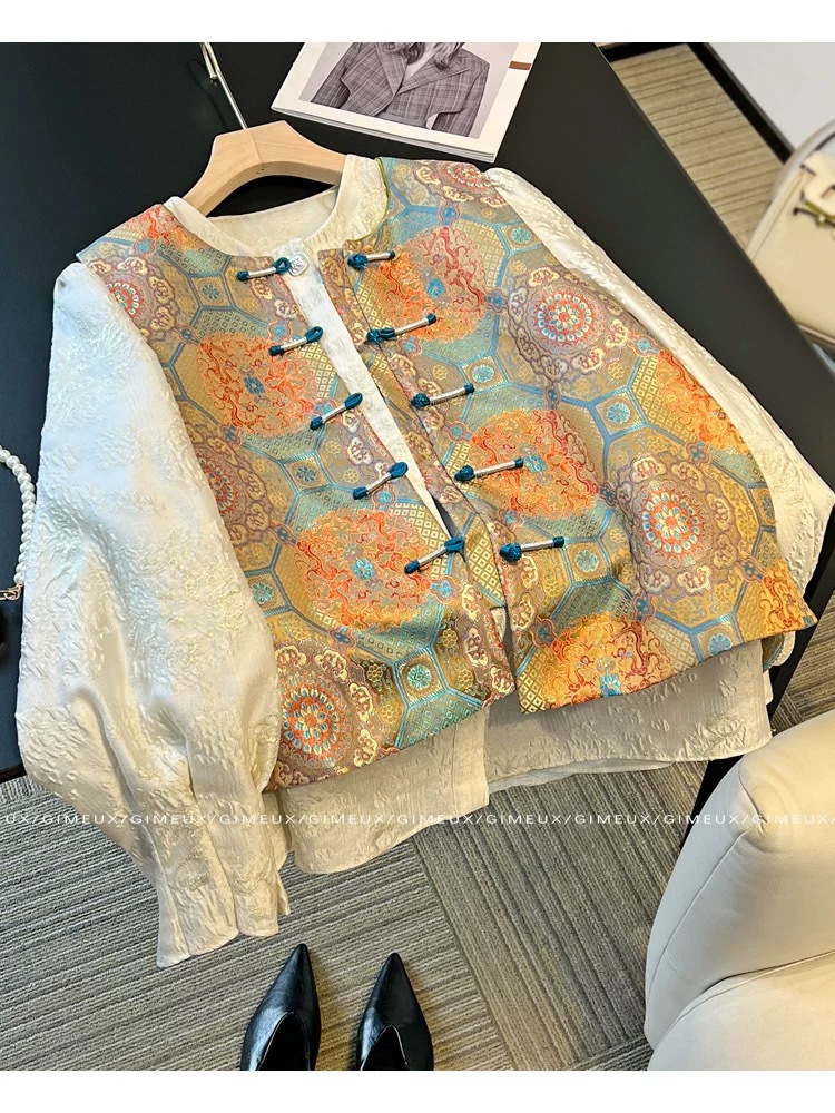 이른 가을과 겨울 세트 긴 소매 셔츠 자켓을 가진 새로운 중국 스타일 국가 스타일 조끼 패션 여성의 2024 새로운스토어 가기