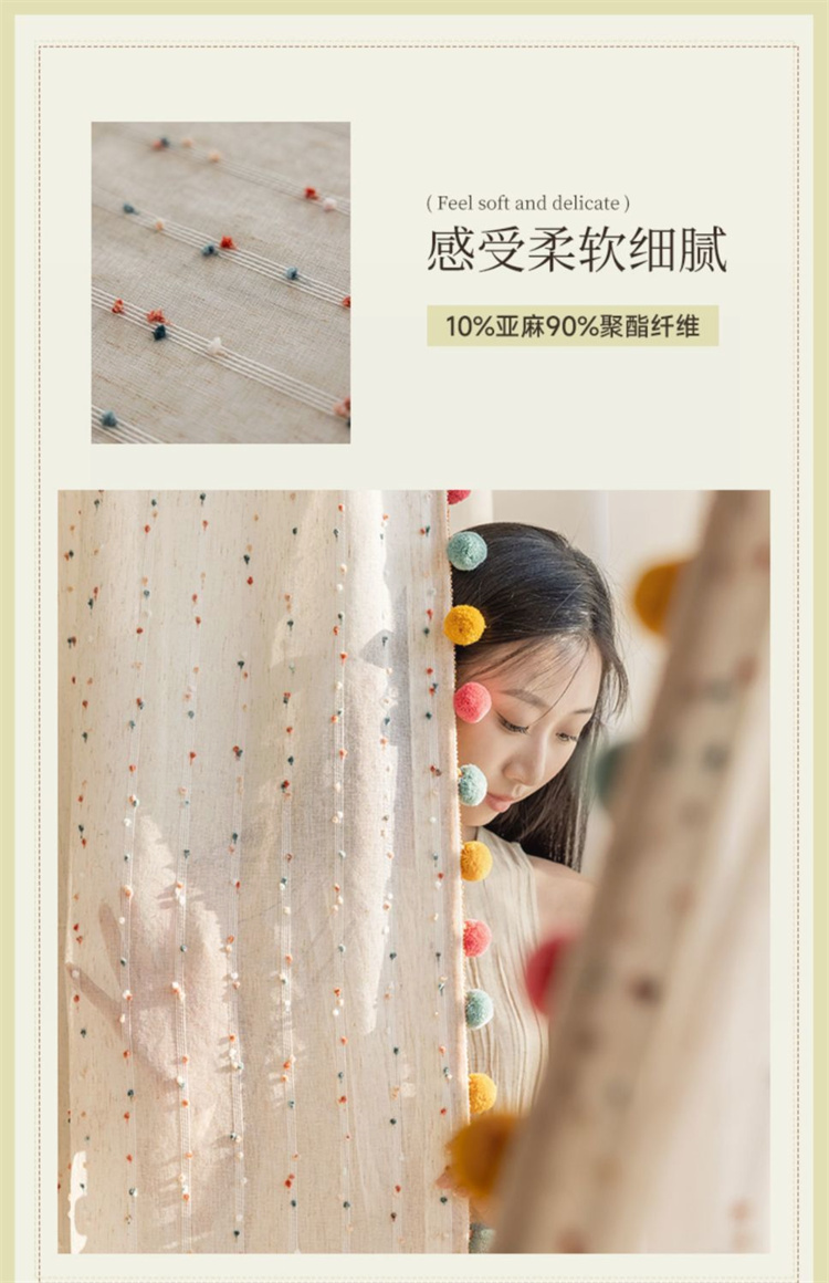 ♡ 프랑스 복고풍 무지개 사탕 창 커튼 중세 스타일 리넨 귀여운 소녀 소녀 침실 거즈 신선한