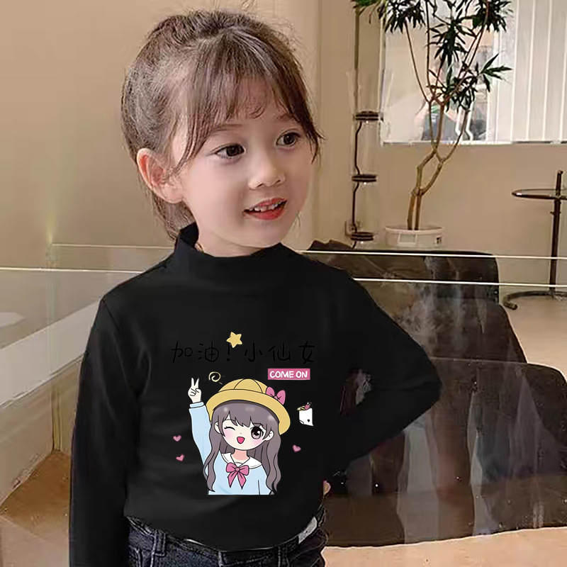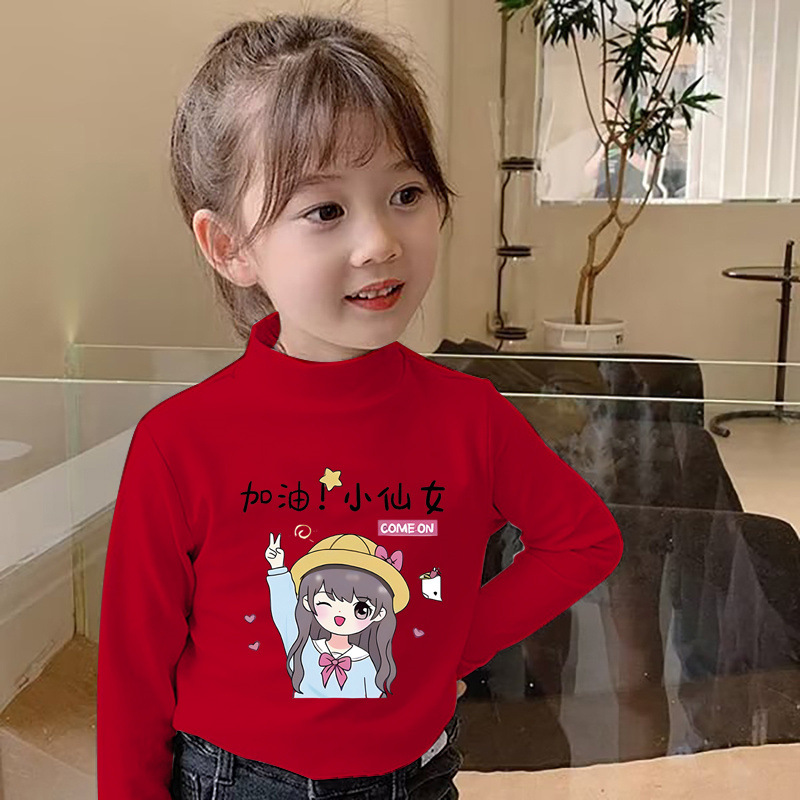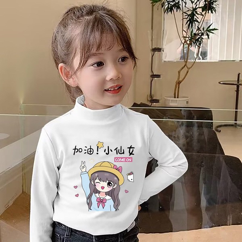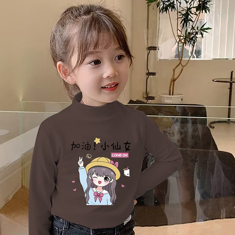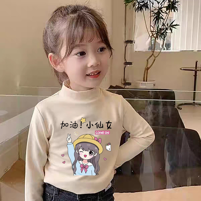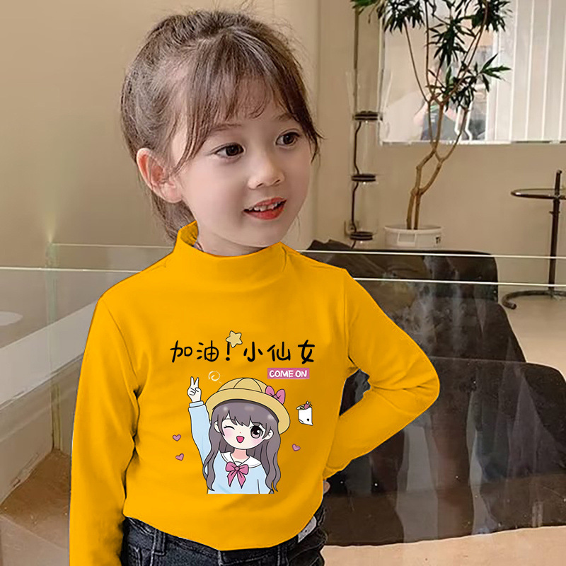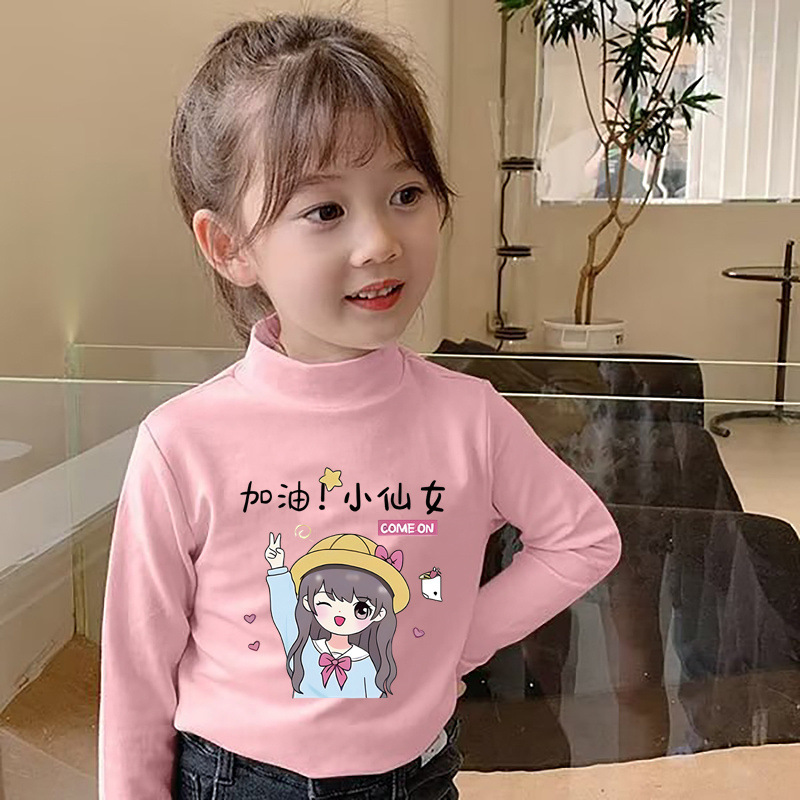 Y2319 # 소녀 긴 소매 티셔츠 봄과 가을 재킷베이스 셔츠 드 벨벳 세미 하이 칼라 어린이 가을 옷 기모 따뜻한 티셔츠