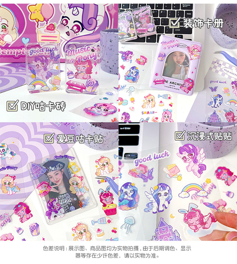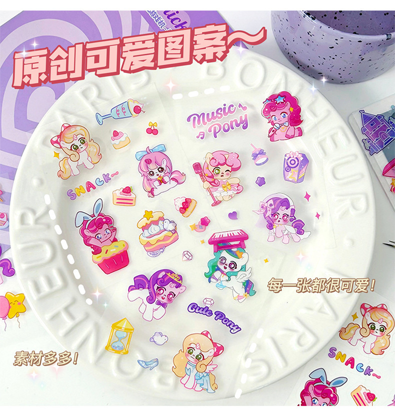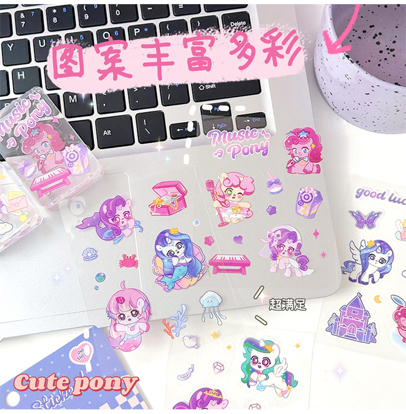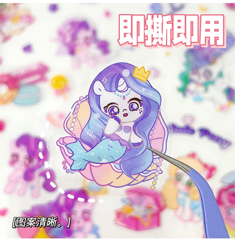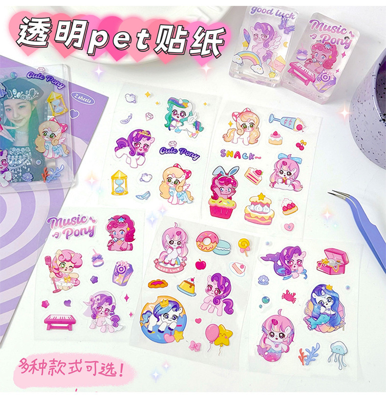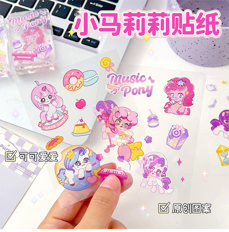 포니 릴리 손 계정 스티커 만화 투명한 애완 동물 방수 구오 카드 물 컵 소녀 전화 쉘 장식 스티커