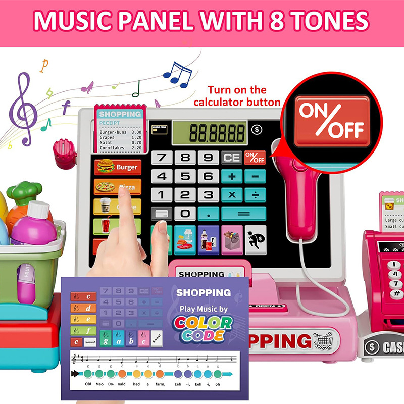 • 핑크 금전등록기 + 컨베이어 벨트 + POS 기계 (계산기 기능 포함)