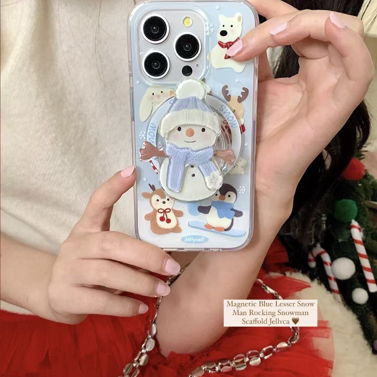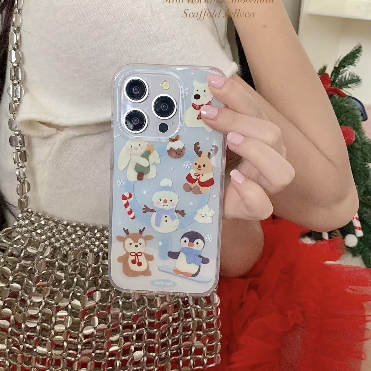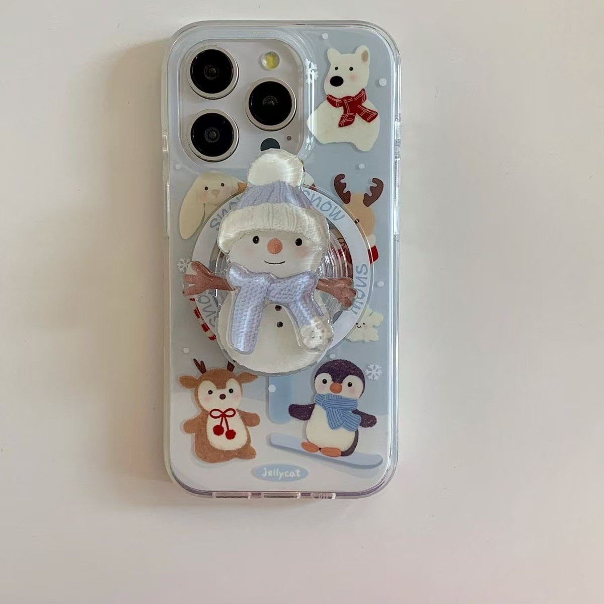 만화 가을 겨울 눈사람 동물 디자인 아이폰17프로맥스 휴대폰 케이스 풀커버 14 마그네틱 케이스 15/13스토어 가기