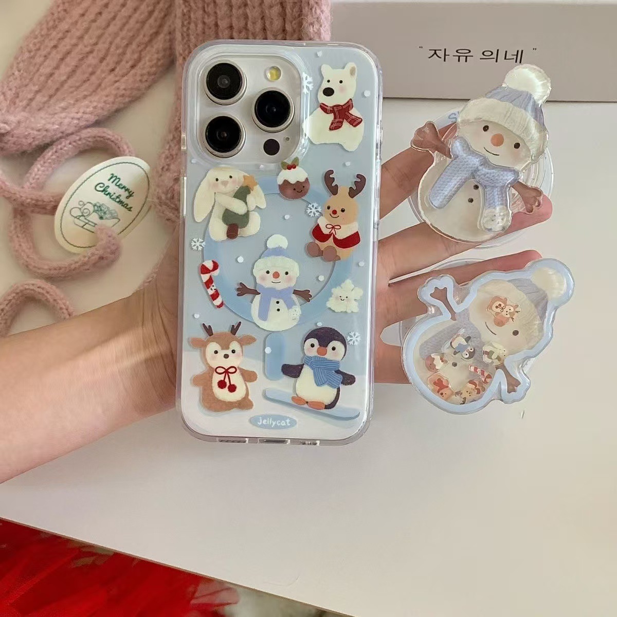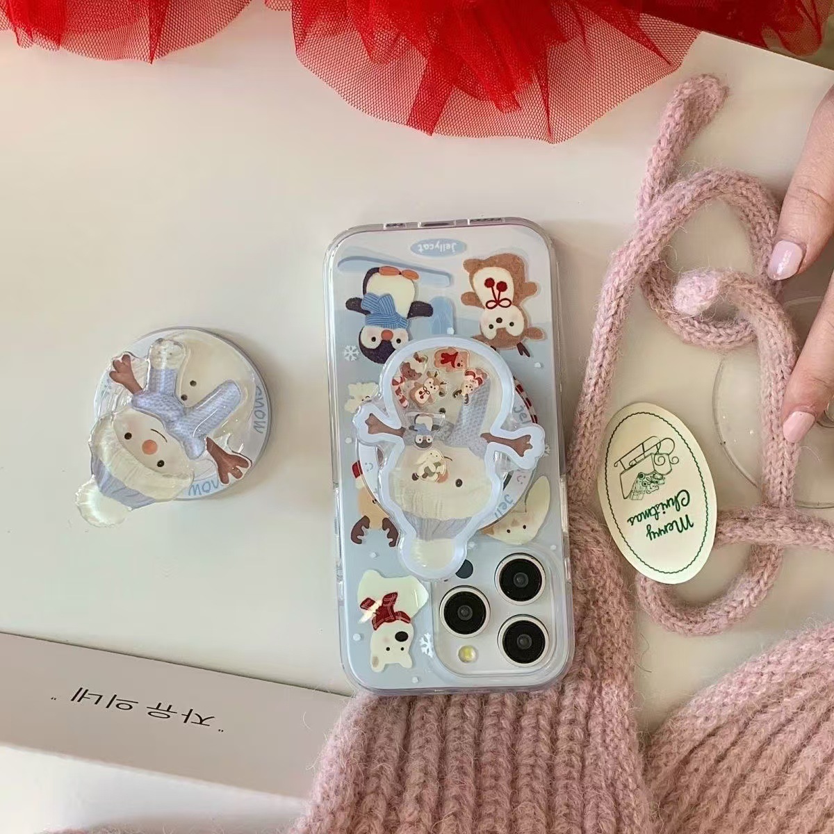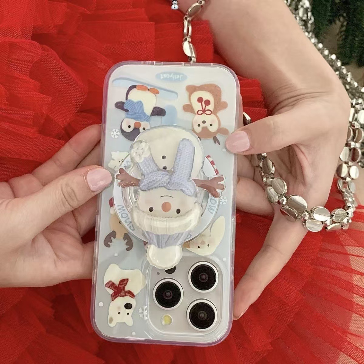 만화 가을 겨울 눈사람 동물 디자인 아이폰17프로맥스 휴대폰 케이스 풀커버 14 마그네틱 케이스 15/13스토어 가기