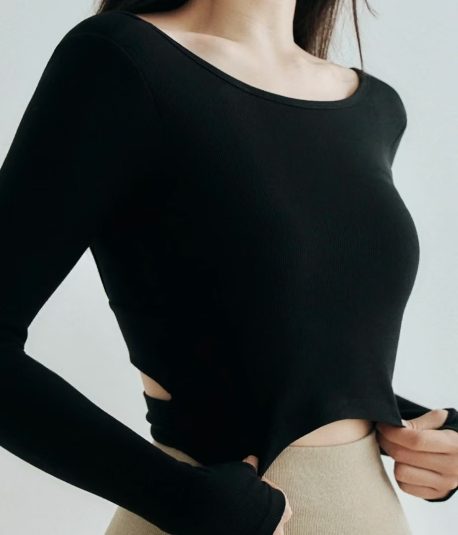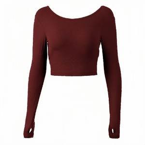 여성용 가슴 패드가있는 요가 옷 2025 봄 여름 새로운 스타일 아름다운 뒤 긴팔 탑 러닝 트레이닝 크로스 얇은 스트랩 피트니스웨어스토어 가기