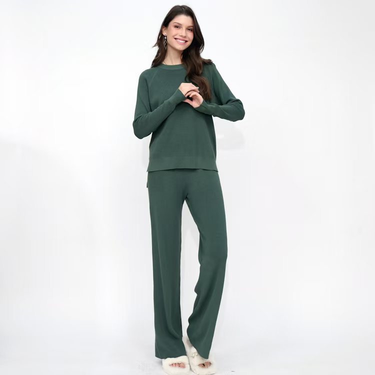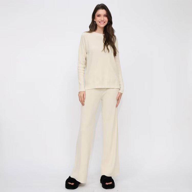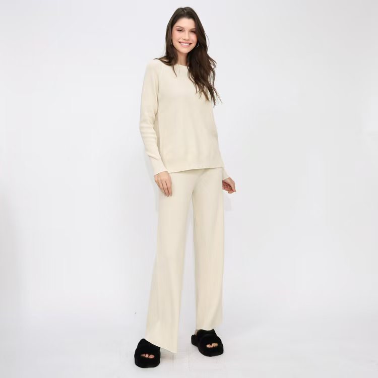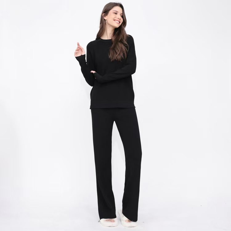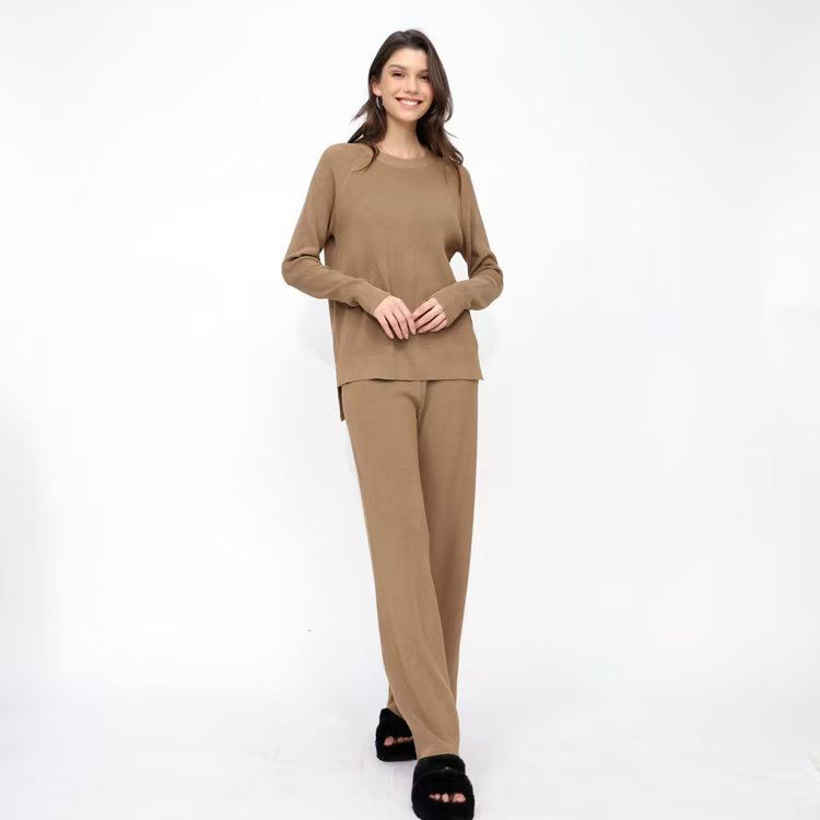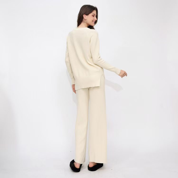 2024 겨울 새로운 두꺼운 스웨터 세트 여성용 느슨한 니트 긴팔 둥근 목 유행 넓은 다리 바지 2 피스 세트