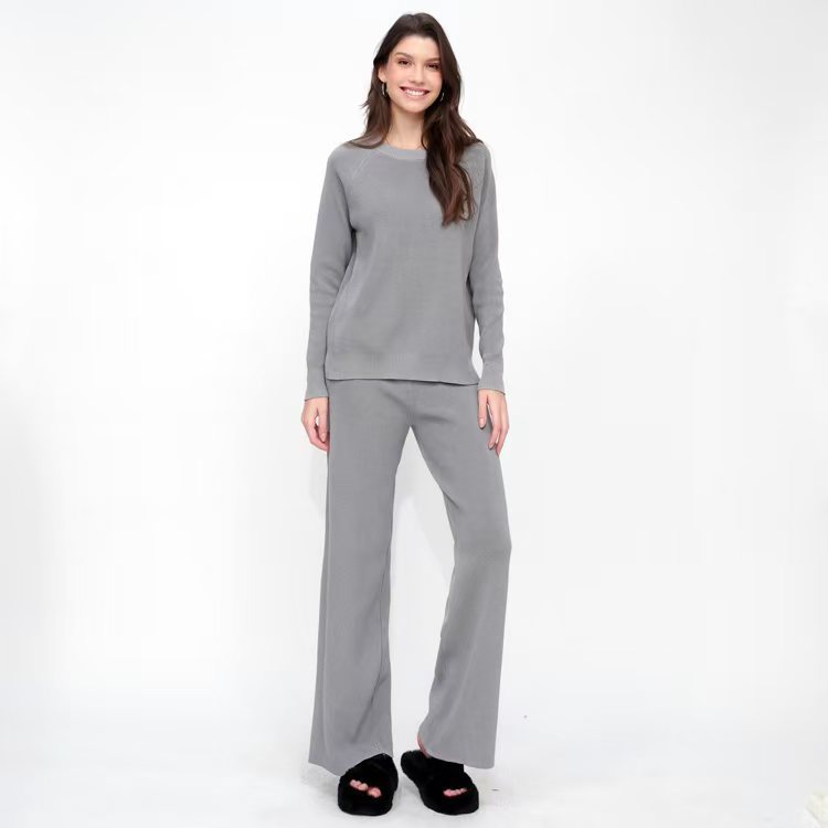 2024 겨울 새로운 두꺼운 스웨터 세트 여성용 느슨한 니트 긴팔 둥근 목 유행 넓은 다리 바지 2 피스 세트스토어 가기