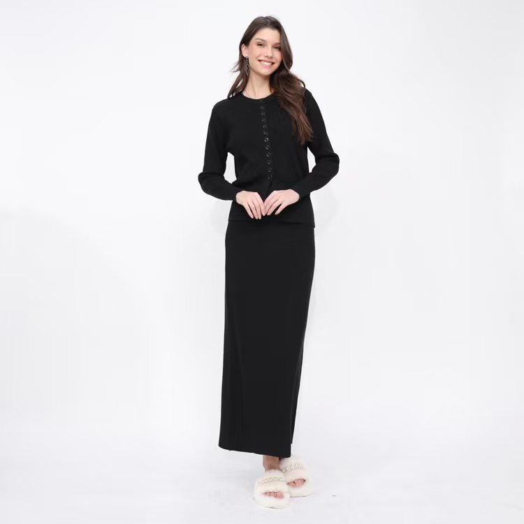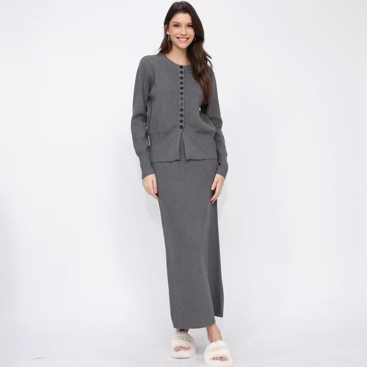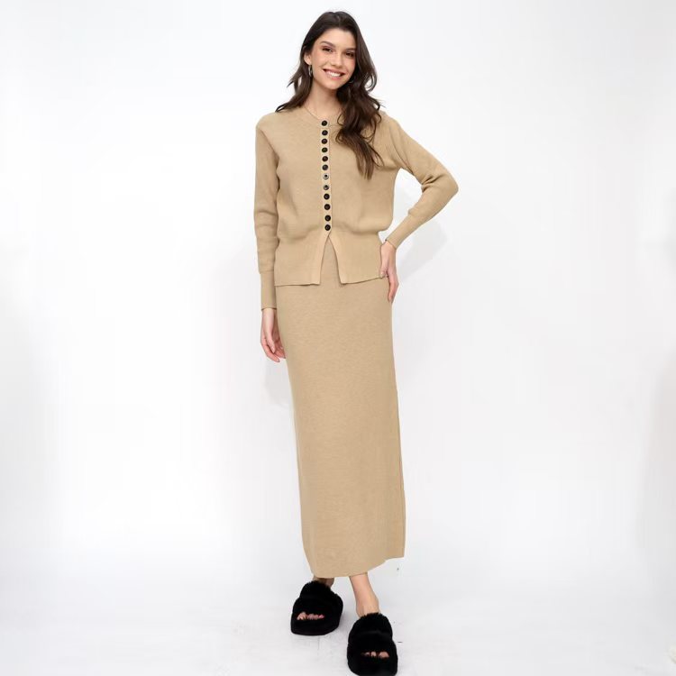 유럽 역 가을과 겨울 Xiaoxiang Cardigan 스커트 롱 스커트 2 피스 니트 스웨터 스커트는 완벽한 세트를 입고스토어 가기