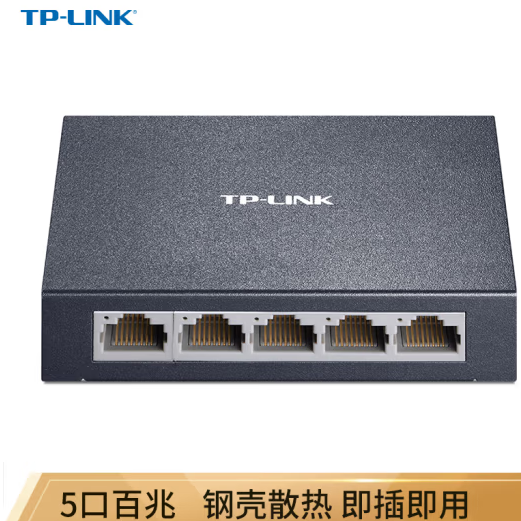 TP-LINK 5口百兆交换机 4口监控网络网线分线器 分流器 金属机身 TL-SF1005D