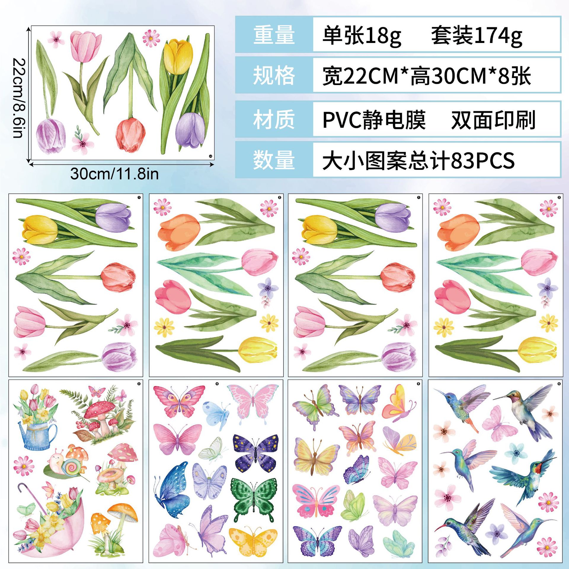 크로스보더 봄 창 스티커, 벌과 나비 정전기 스티커, 가정 장식, 거실 창 유리 스티커, 해바라기 창 스티커