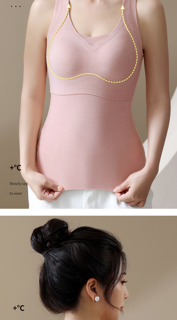 깔끔한 브러시 벨벳 따뜻한 조끼 가슴 패드가 두꺼운 가을과 겨울 조끼 내베이스 속옷 가을 옷을 입은 여성용 기모
