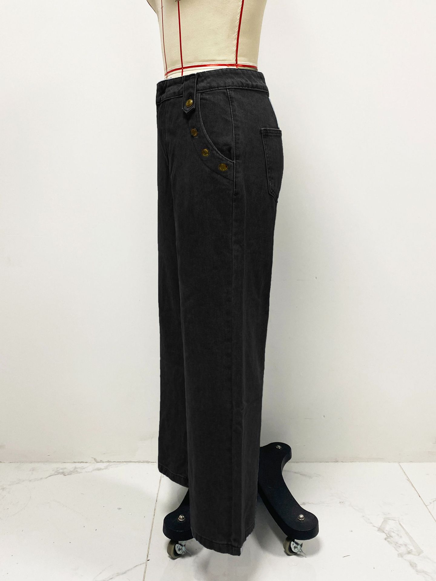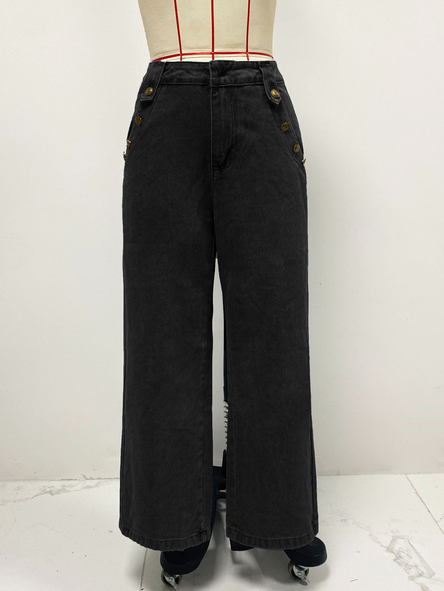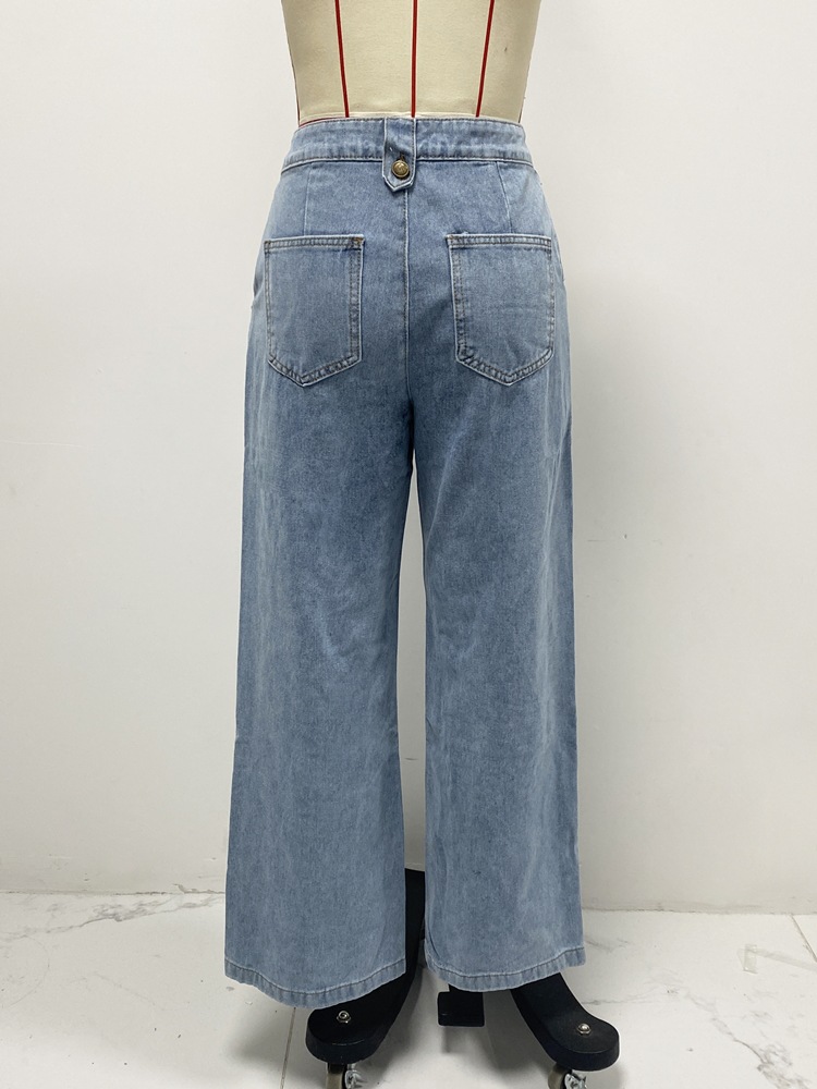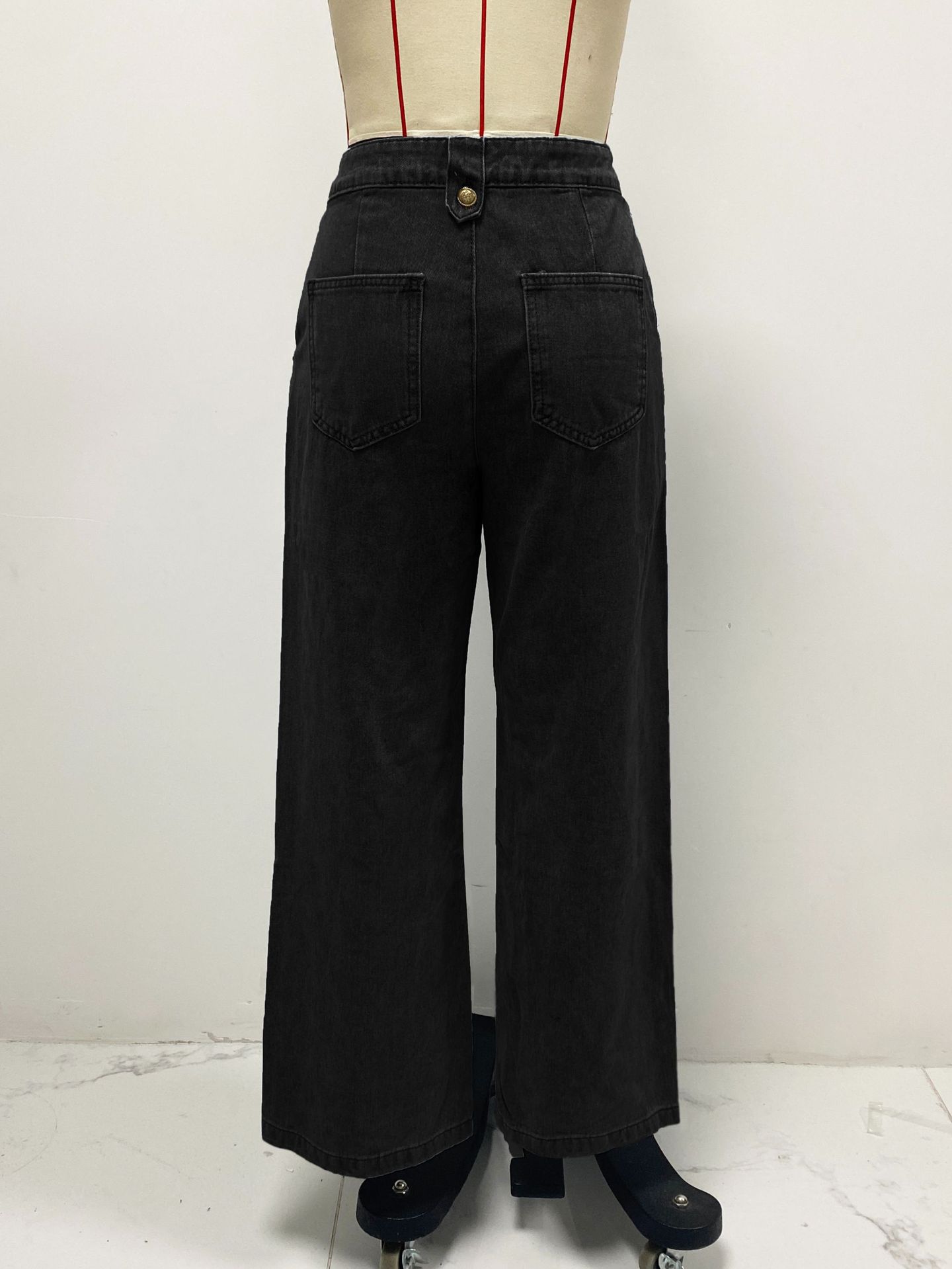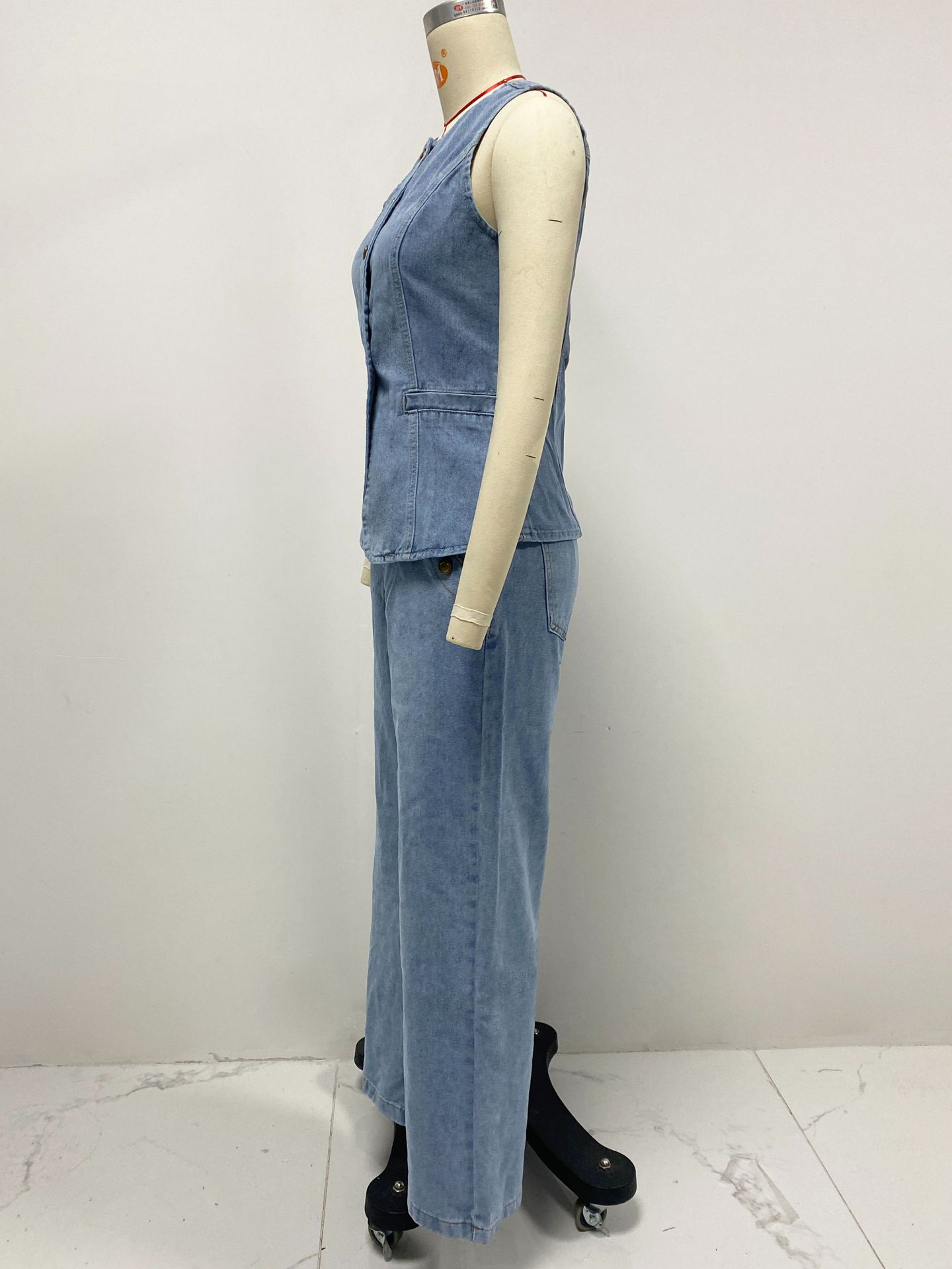 공장 직접 판매 국경 간 2025 새로운 미국 단색 패션 민소매 데님 정장 유럽과 미국 스타일의 스트레이트 와이드 레그 팬츠